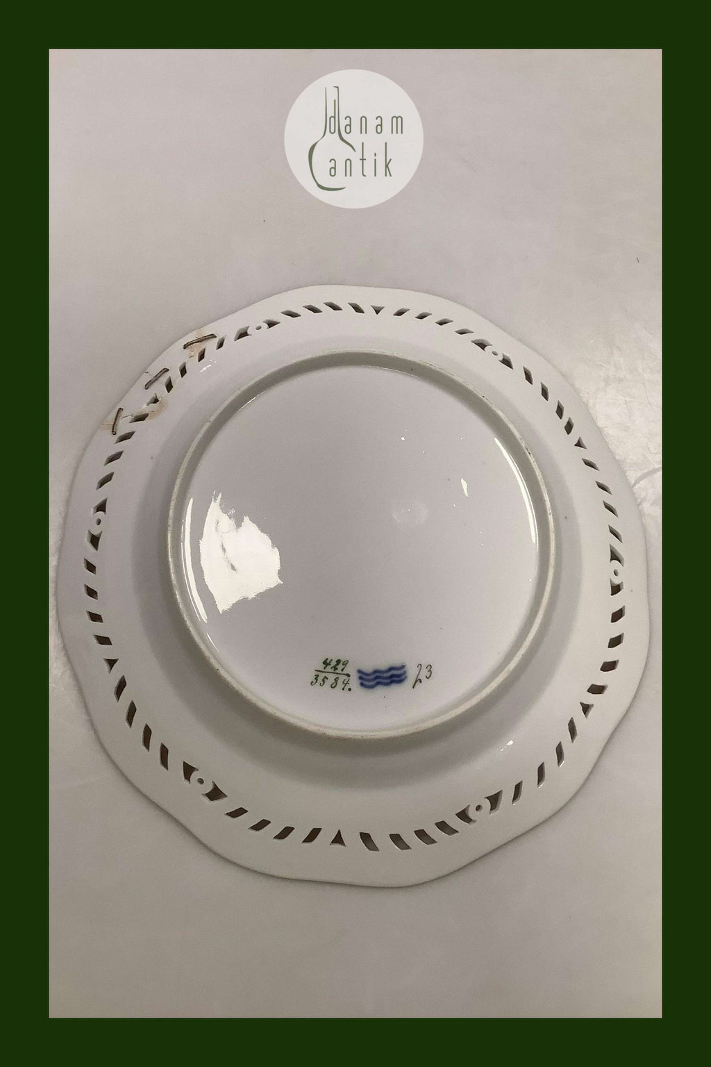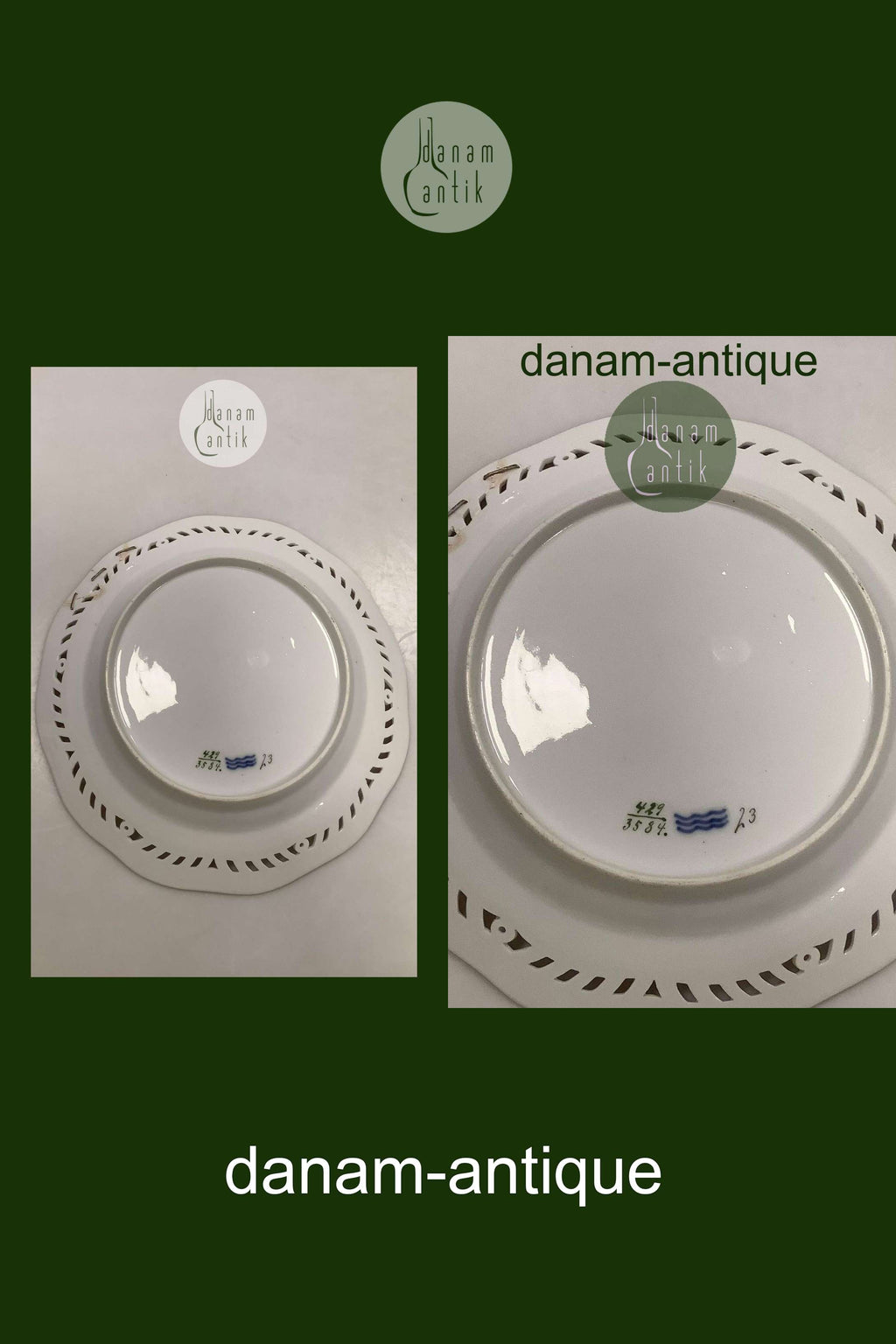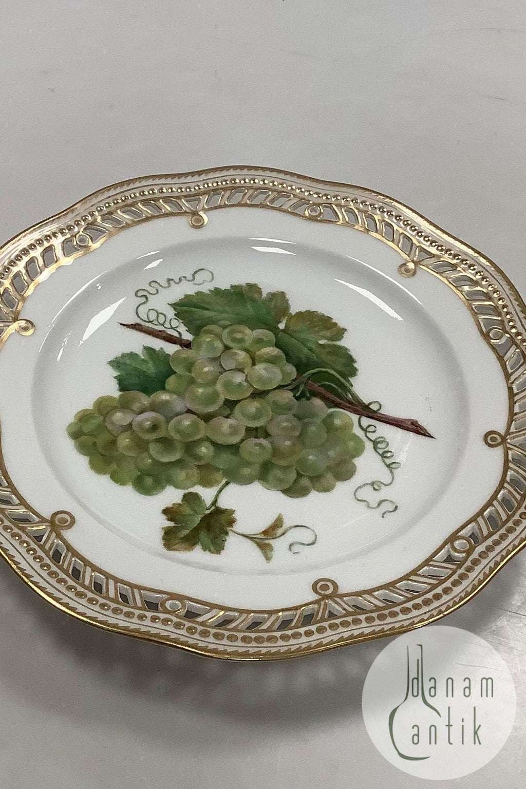 Royal Copenhagen Flora Danica Frugttallerken No 429/3584. Måler 22,2 cm. 1. Sortering. Med gennembrudt kant. Med reparation, se billede