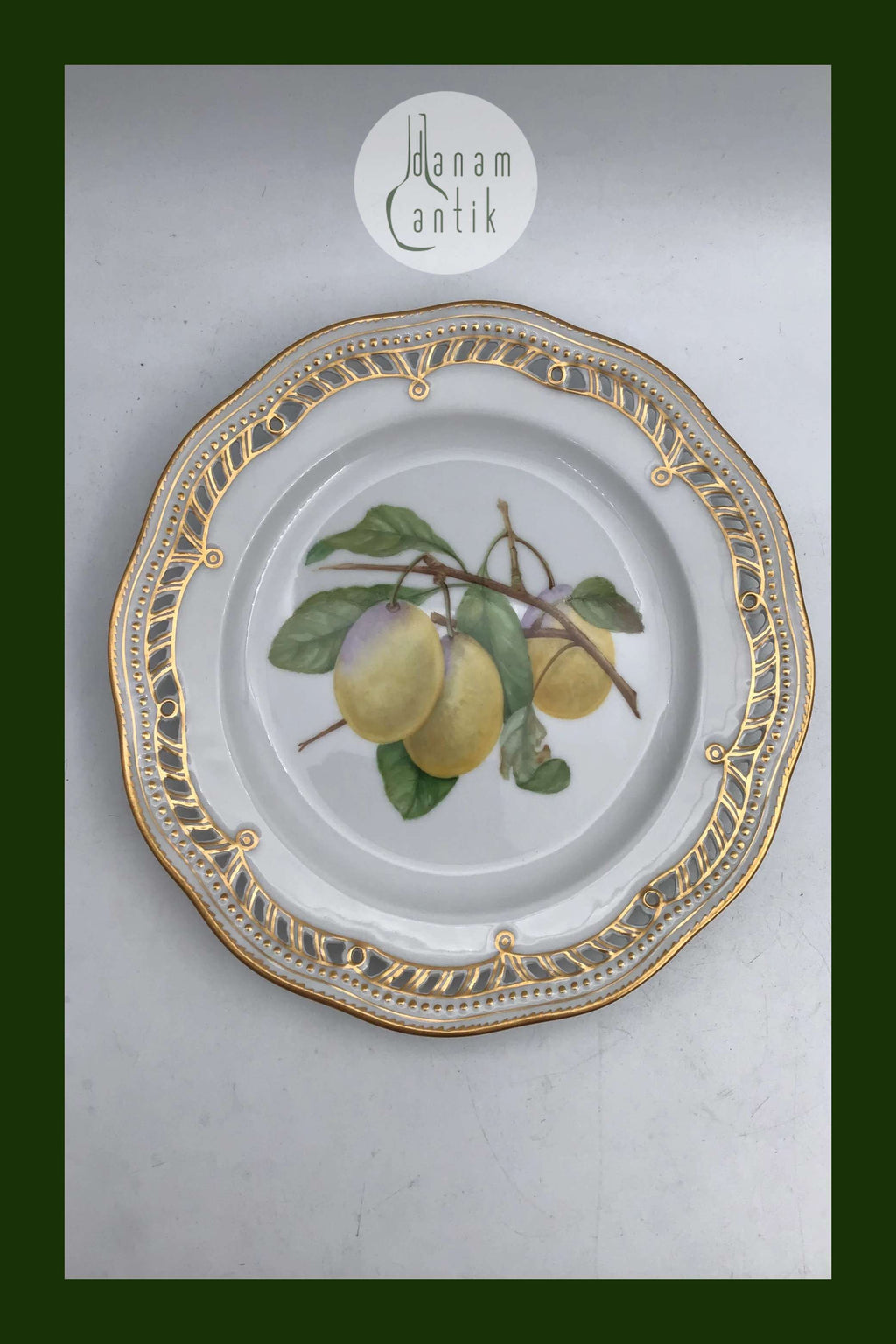 Royal Copenhagen Flora Danica Frugttallerken No. 429/3584. Måler 22,2 cm. (8.74 inch) 1. Sortering. Med gennembrudt kant.