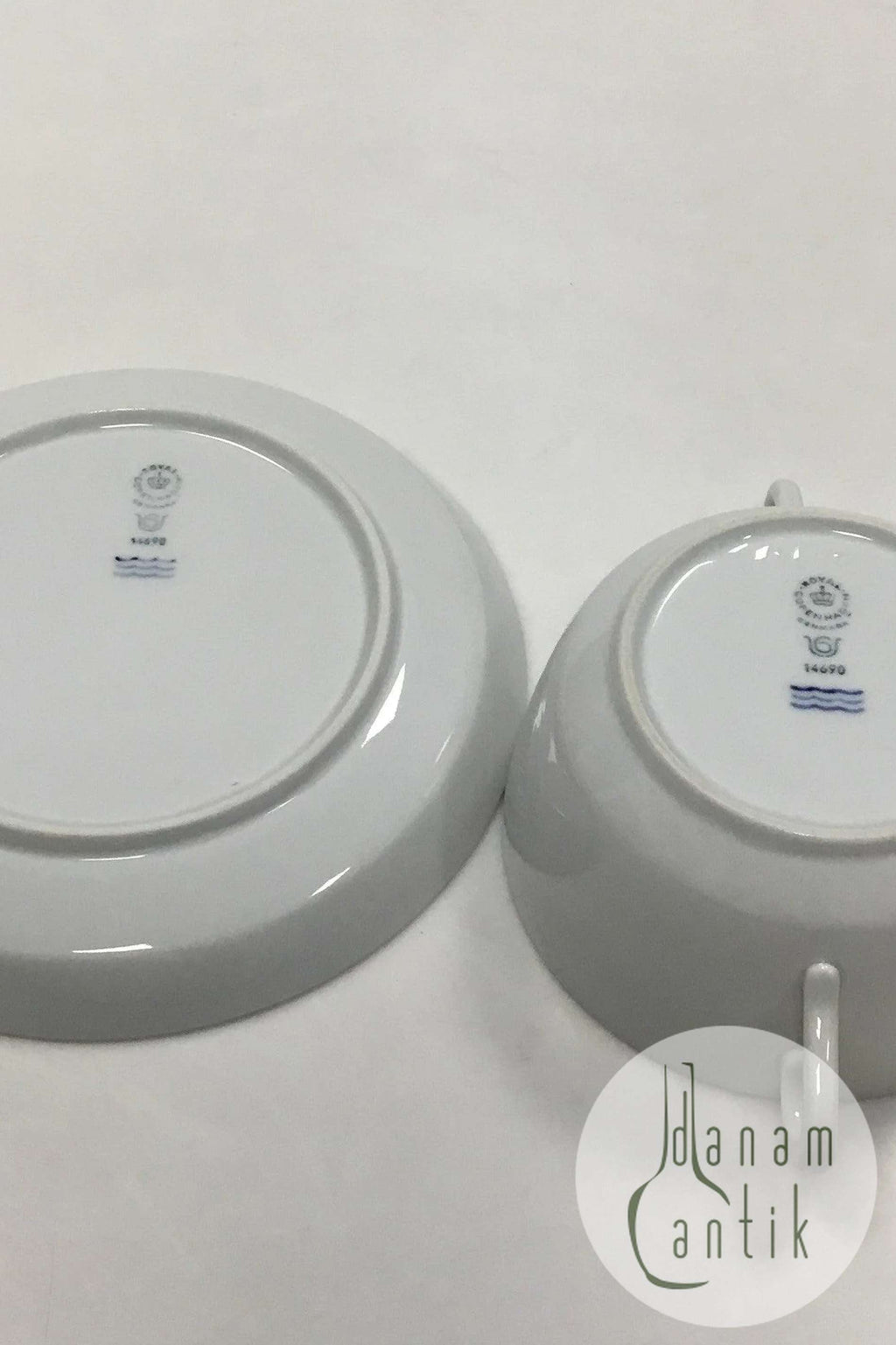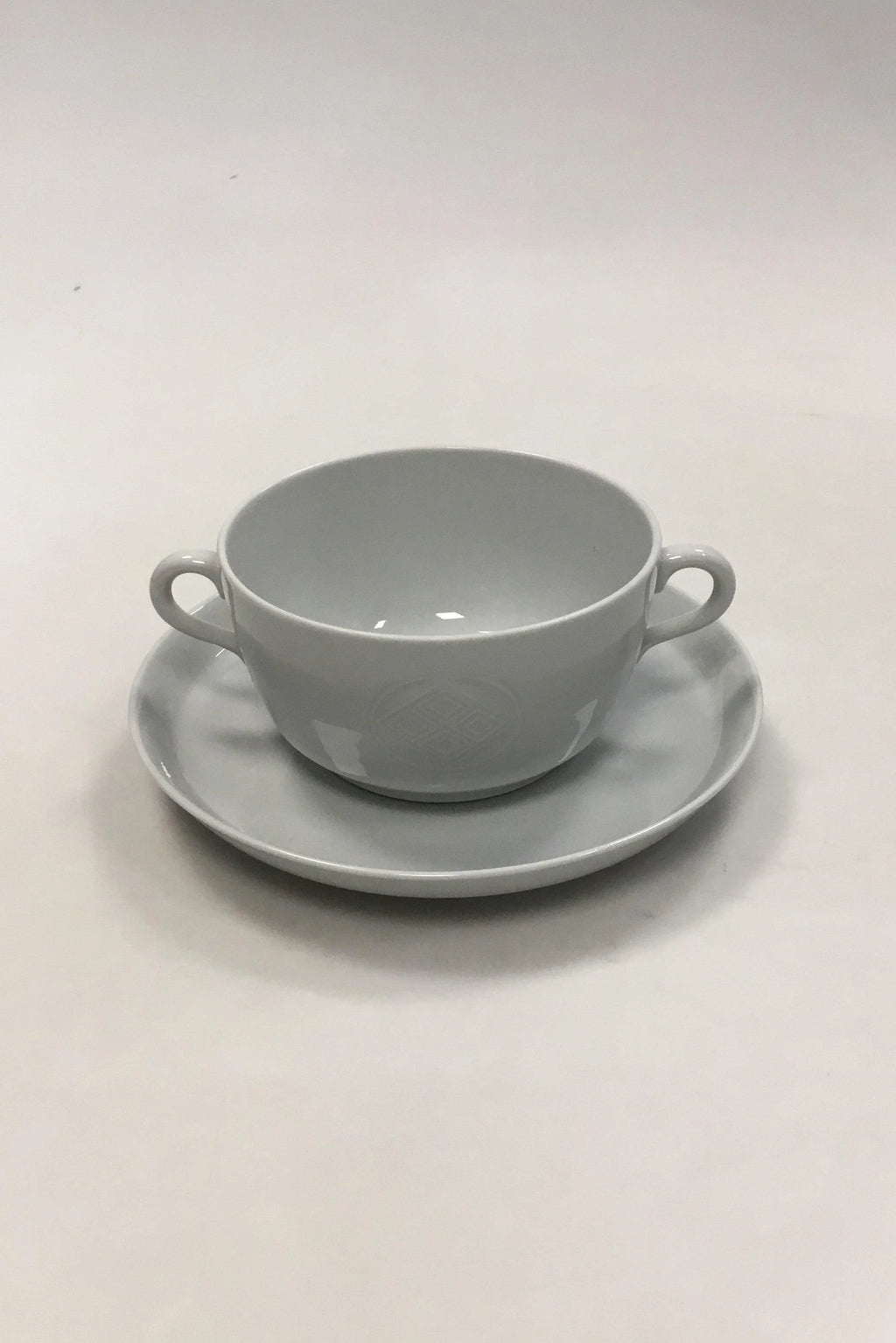 Royal Copenhagen Gemma Bouillonkop med underkop, uden låg No 14690. Måler Kop:8,5 cm x 11,5 cm dia. Underkop: 17 cm