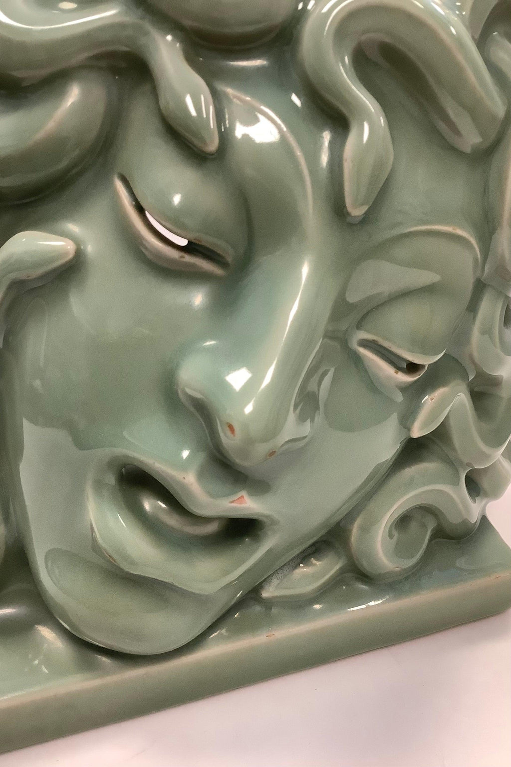 Royal Copenhagen Grøn Celadon Maske af Medusa No 2950, Hans Henrik Hansen 1927.