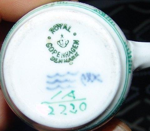 Royal Copenhagen Grøn Musselmalet flødekande 1A/2230