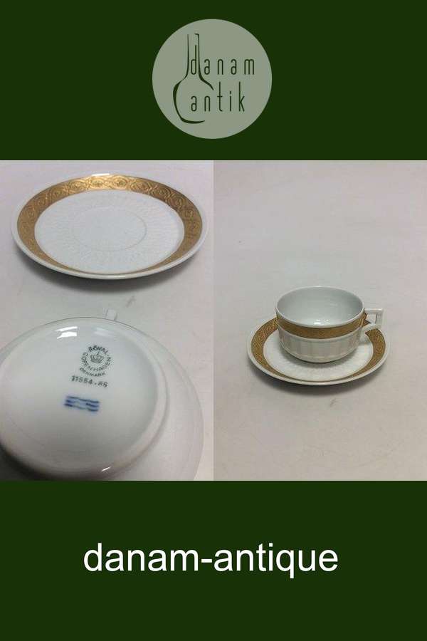 Royal Copenhagen Guld Vifte Morgen / Tekop og Underkop No. 11554. 6,3 cm H. 10 cm diameter.