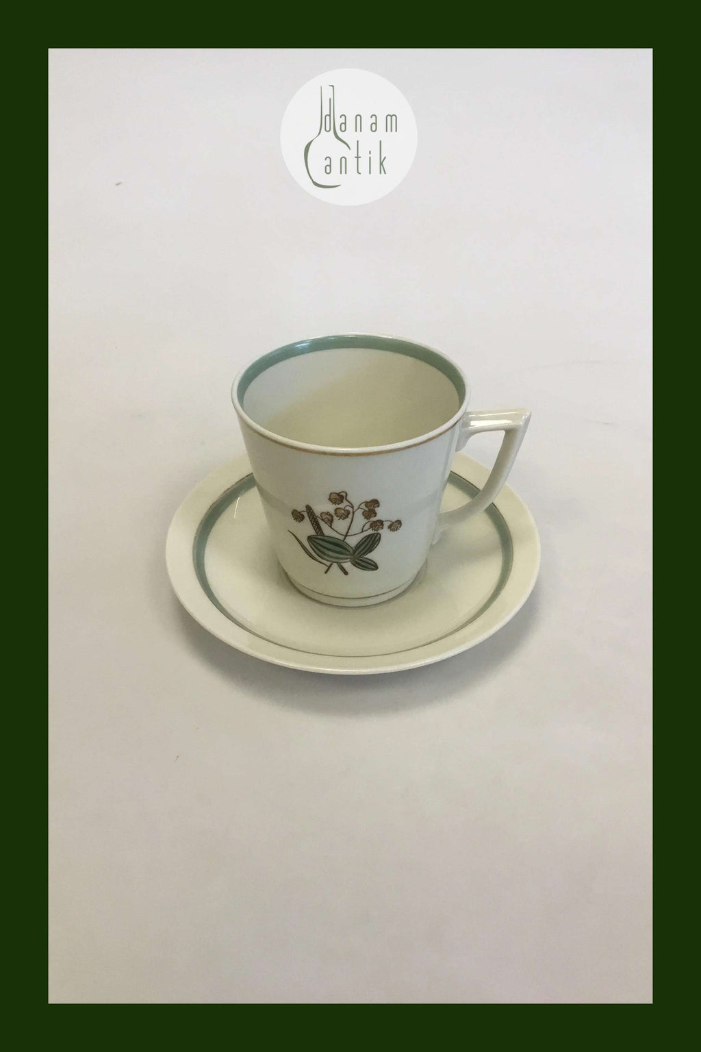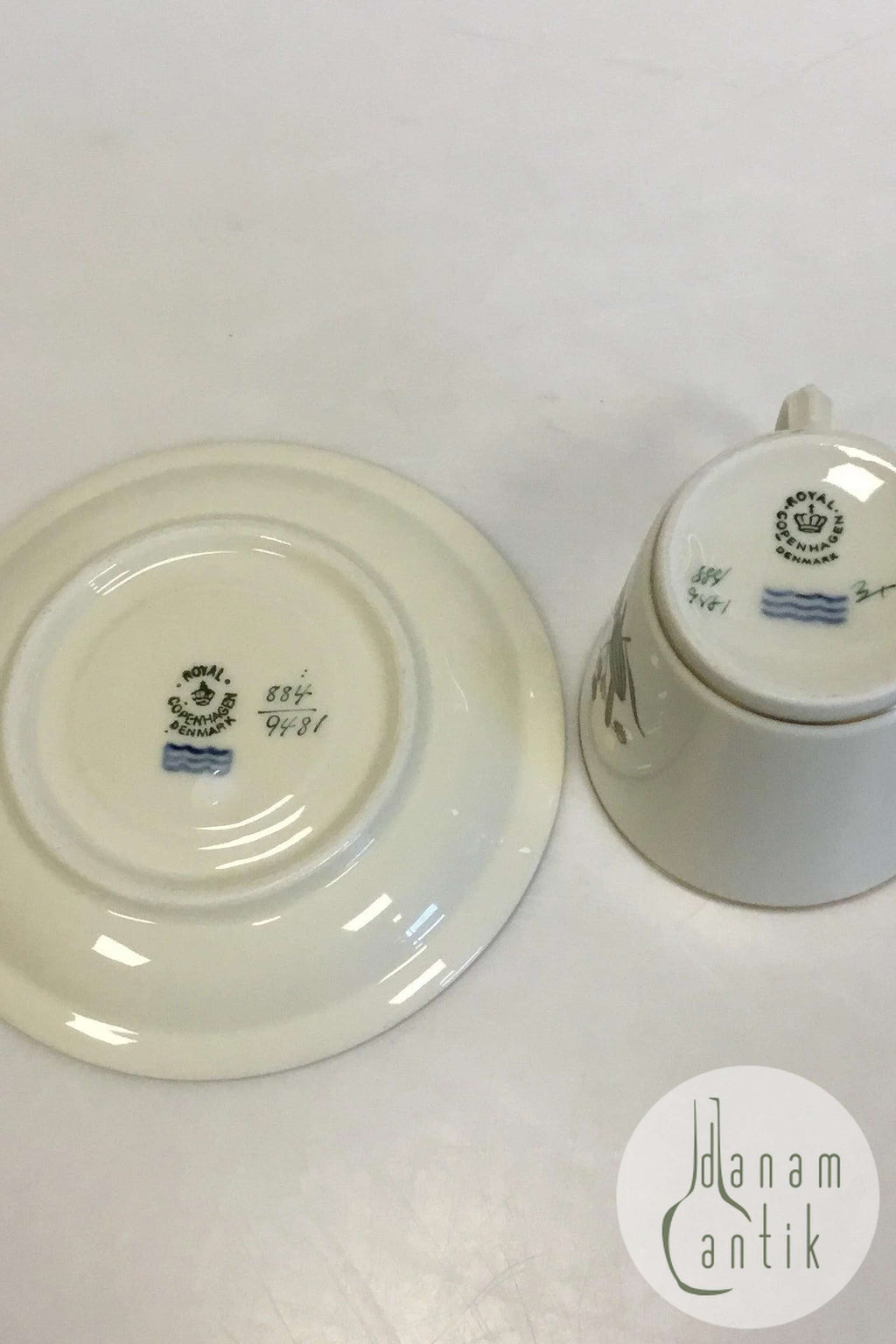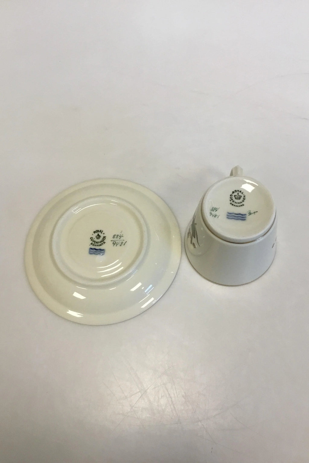 Royal Copenhagen Hjertegræs Kaffekop med underkop No 884/9481. Måler 6,8 cm x 7,5 cm dia (2 43/64 x 2 61/64 in). Underkop: 13,3 cm (5 1/8 in).