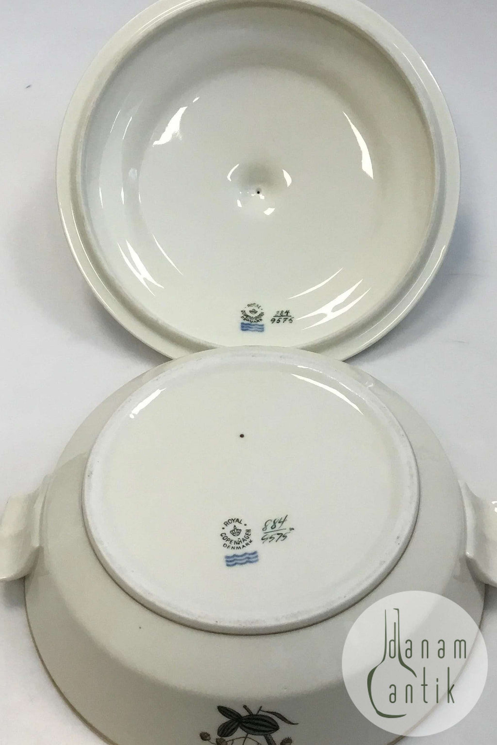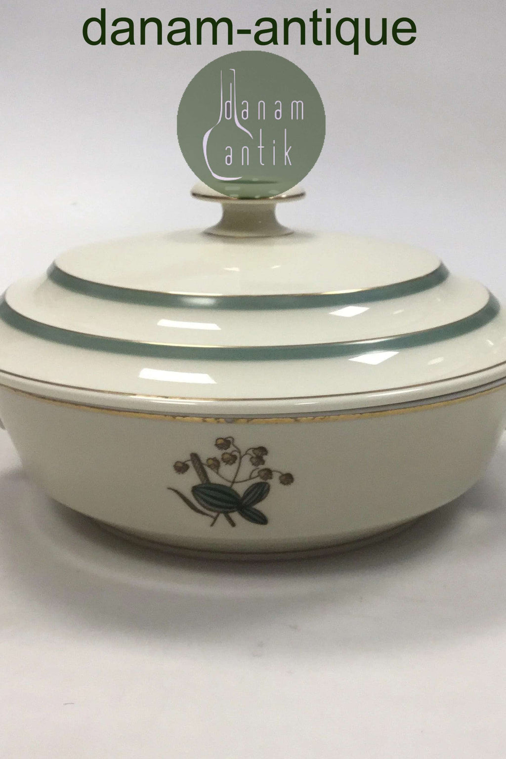 Royal Copenhagen Hjertegræs Rund Lågskål No 884/9575. Måler 12 cm / 4 23/32 in. x 22 cm / 8 21/32 in. dia. Let slid på guldkant.
