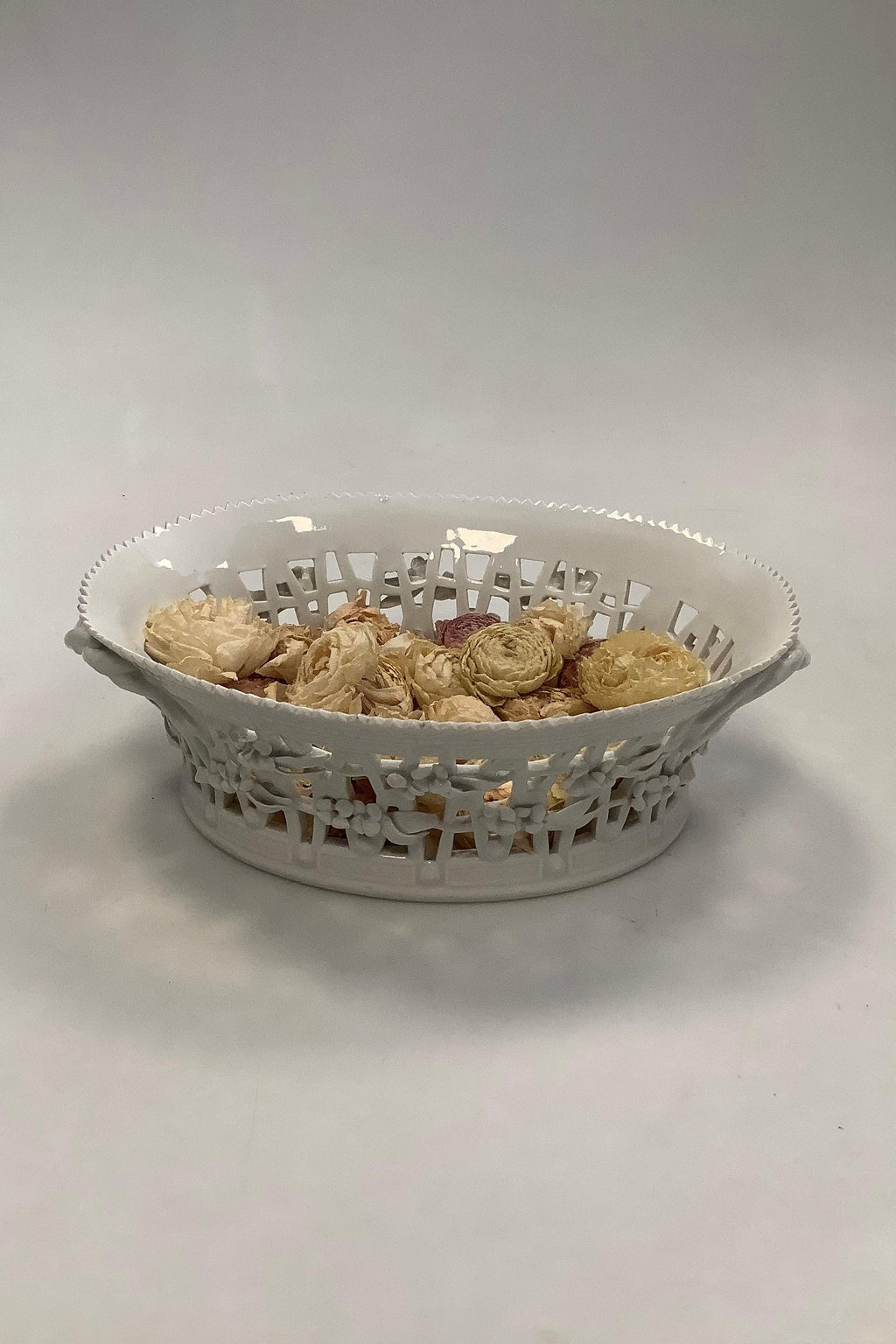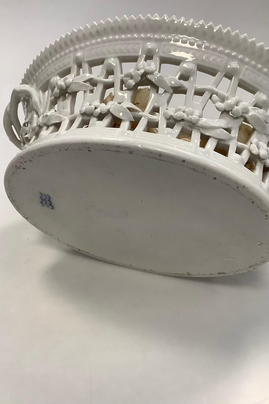 Royal Copenhagen Hvid Flora Danica Perlestel Oval Frugtkurv No 3536