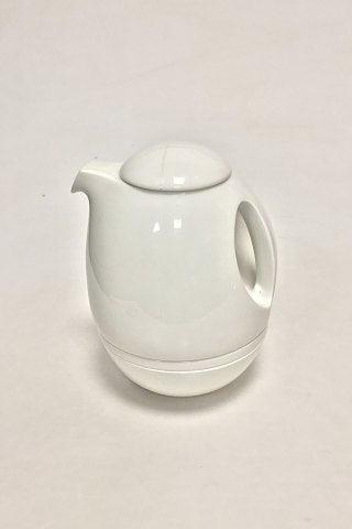 Royal Copenhagen hvid porcelæns kaffkande med låg, fad, æggebæger og skål i et. Låg med skader. H: 20 cm