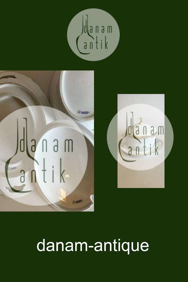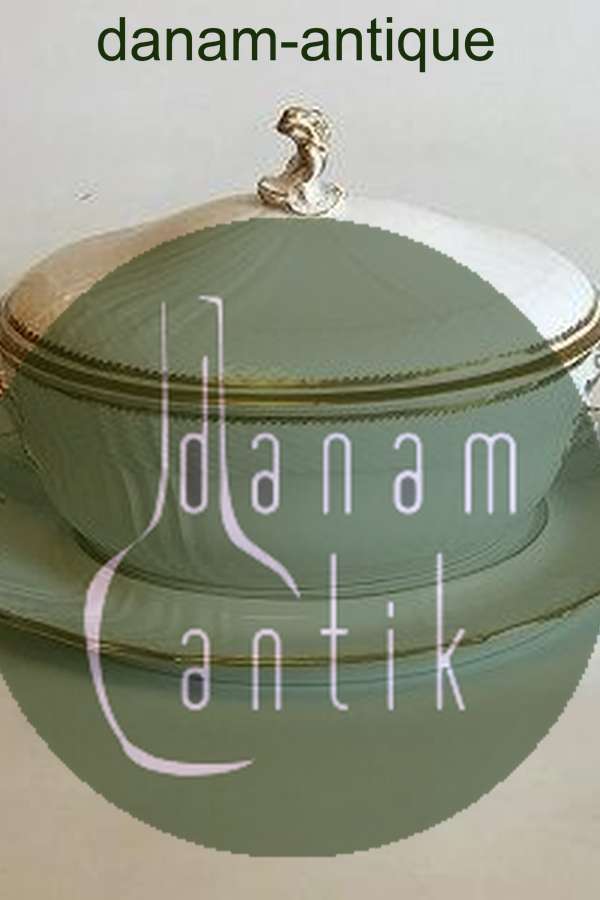 Royal Copenhagen Hvid Svejfet med takket guldkant (Stel 387 / Josephine) Oval terrin med underfad No 1666