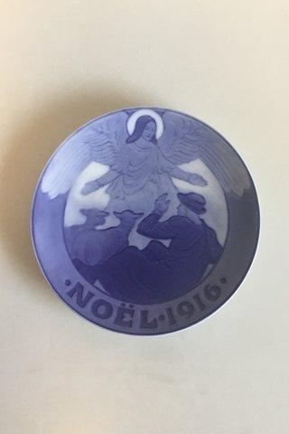 Royal Copenhagen Juleplatte fra 1916 med Fransk indskription "Noel". Måler 18 cm