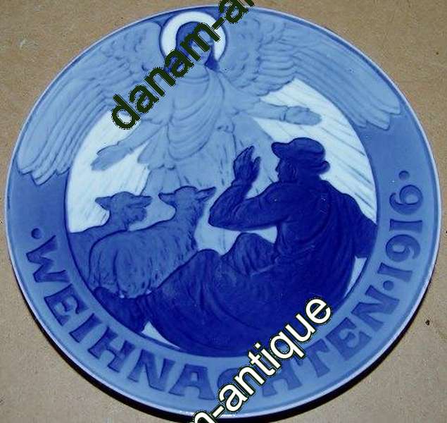 Royal Copenhagen Juleplatte fra 1916 med Tysk indskription "Weihnachten"