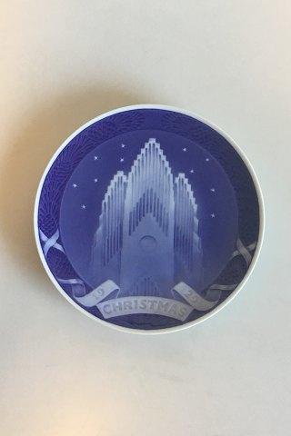 Royal Copenhagen Juleplatte fra 1929 med Engelsk indskription "Christmas". Måler 18 cm