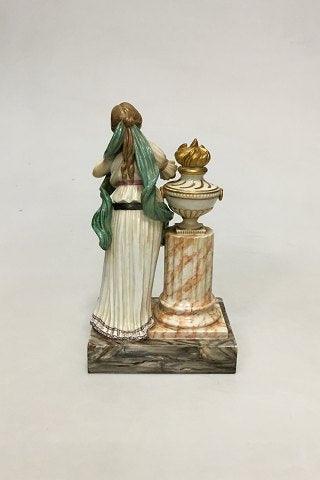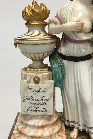 Royal Copenhagen Juliane Marie Figur med overglasur No 12187. Kvinde med blottet bryst og Tekst: "Venskab i Glæde og Sorg nærværende og fraværende"