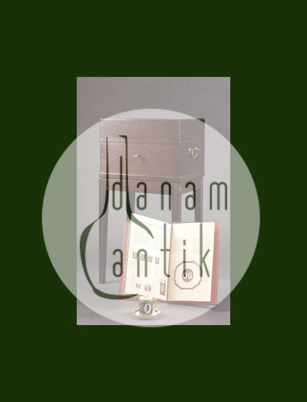 Nøglen og skilt mangler. Stoffet i kassen er taget skade af tidens tand.