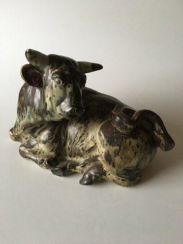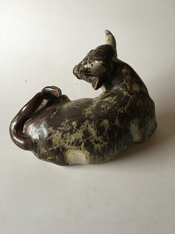Royal Copenhagen Knud Kyhn Stentøjsfigur af Liggende Tyr No. 2595. 25 cm Høj. 37 cm L. I fin hel stand.