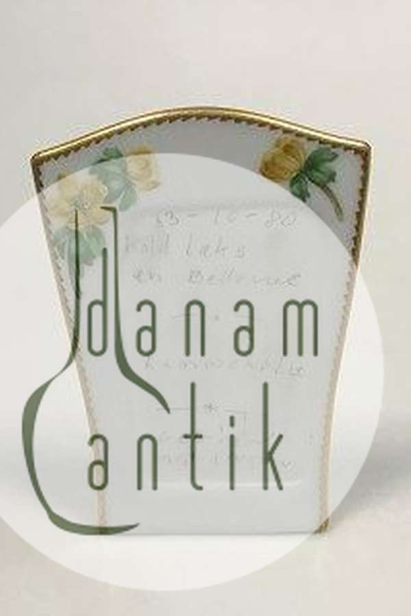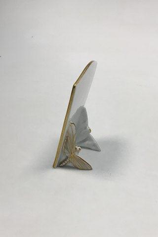 Royal Copenhagen Menuskilt til bord No 891. Dekoreret med blomster, takket guldkant og guldsmede. Måler 13 cm