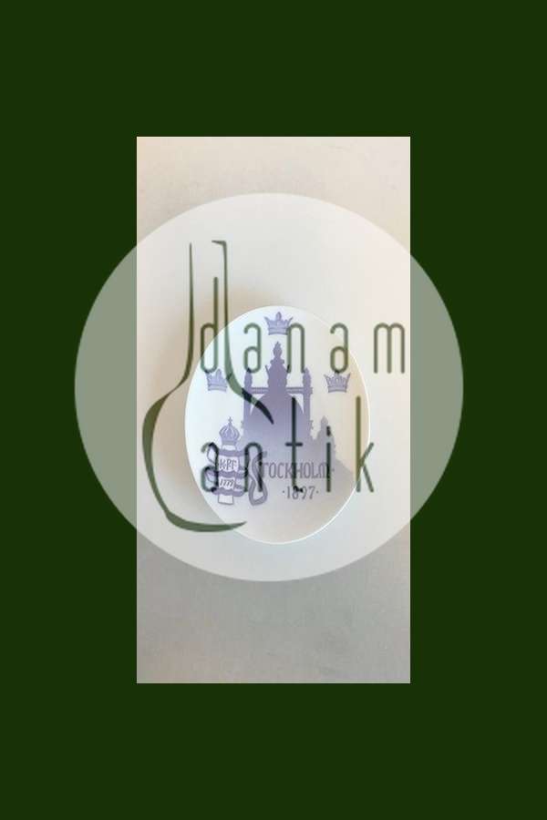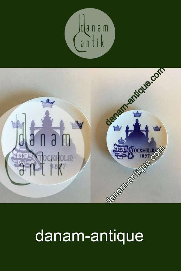 Kunst- og Industriudstillingen i Stockholm, Kuppel, derover tre kroner, f.n. indskrift: STOCKHOLM 1897, t.v. kronet vase med bogstaver K.P.F. (Kongelige Porcelains Fabrik) 1779. Design: Arnold Krog 1200 ekspl., 18,5 cm
