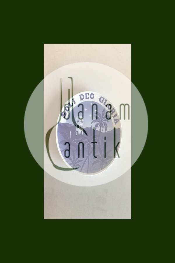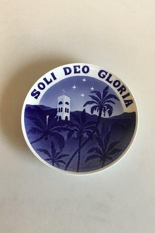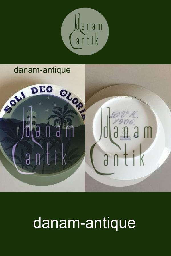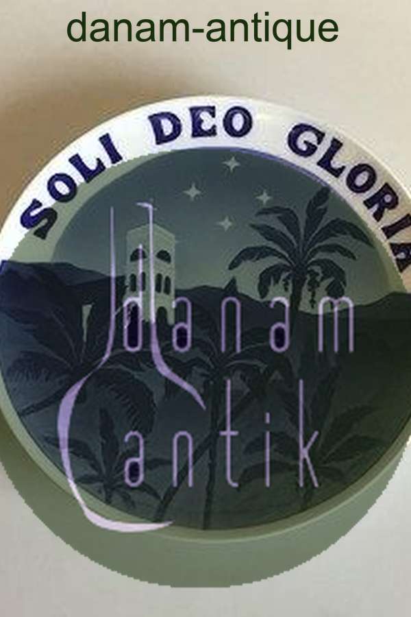 1906 Vestindisk Kirkesag. Landskab med kirketårn under stjernehimmel, i forgrunden palmer. Indskrift: SOLI DEO GLORIA (Gud alene æren). Design: Christian Thomsen: 300 ekspl. 20 cm