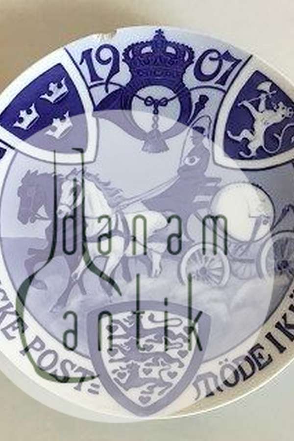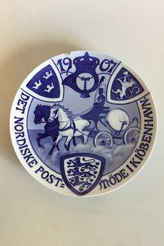 1907 Nordisk Postmøde i København. Kuglepost omgivet af det danske, det norske og det svenske våben. F.o. kronet posthorn og årstal 1907. Indskrift: DET NORDISKE POSTMØDE I KJØBENHAVN. Design: Karl Hansen-Reistrup : 8 ¾”, 22 cm