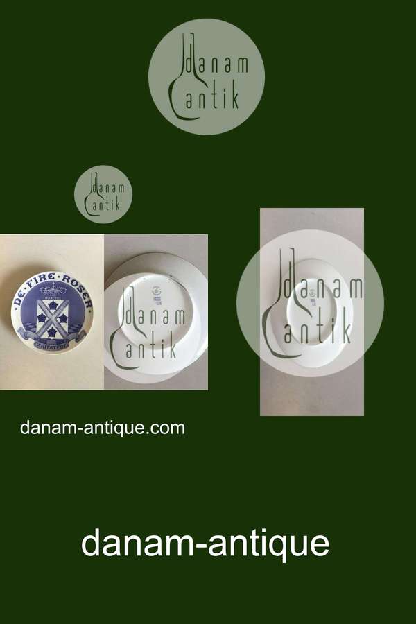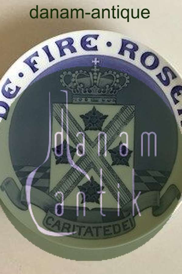 Royal Copenhagen Mindeplatte fra 1909 RC-CM100. Frimurerlogen "De Fire Roser". I Aarhus. Kronet skjold med andreaskors og fire roser. Indskrift: De Fire Roser - Caritate Dei ) (Ved Guds Kærlighed). Udført til logen Skt. Andreas, stiftet i 1908.