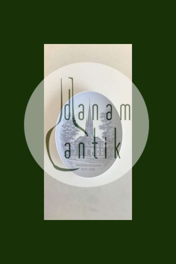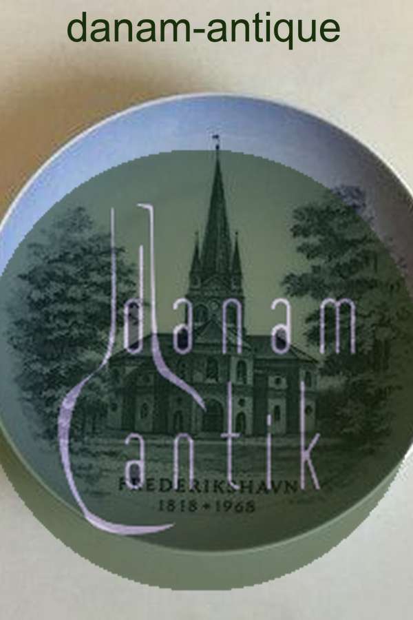 Kirken i Frederikshavn. Indskrift: 1818 -1968. Fremstillet i anledning af byens 150-års jubilæum. Tegnet af Kaj Lange