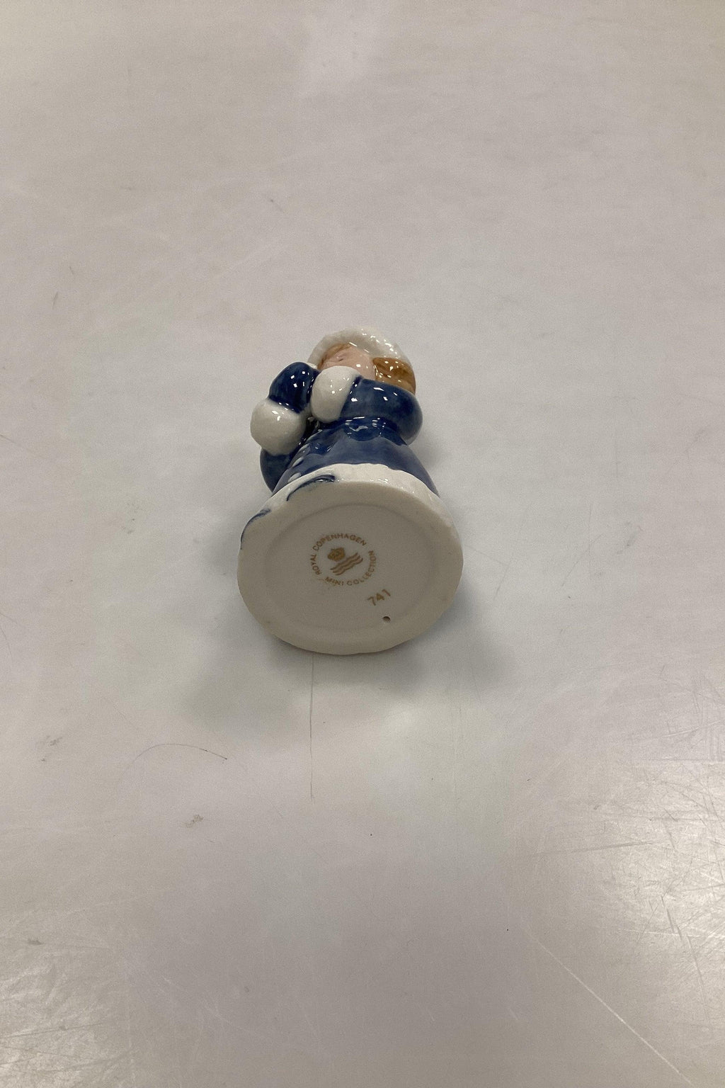 Royal Copenhagen Mini Collection Pige med Fugl No. 741. Måler 7,3 cm / 2 7/8 inch. Med løkke til ophængning.