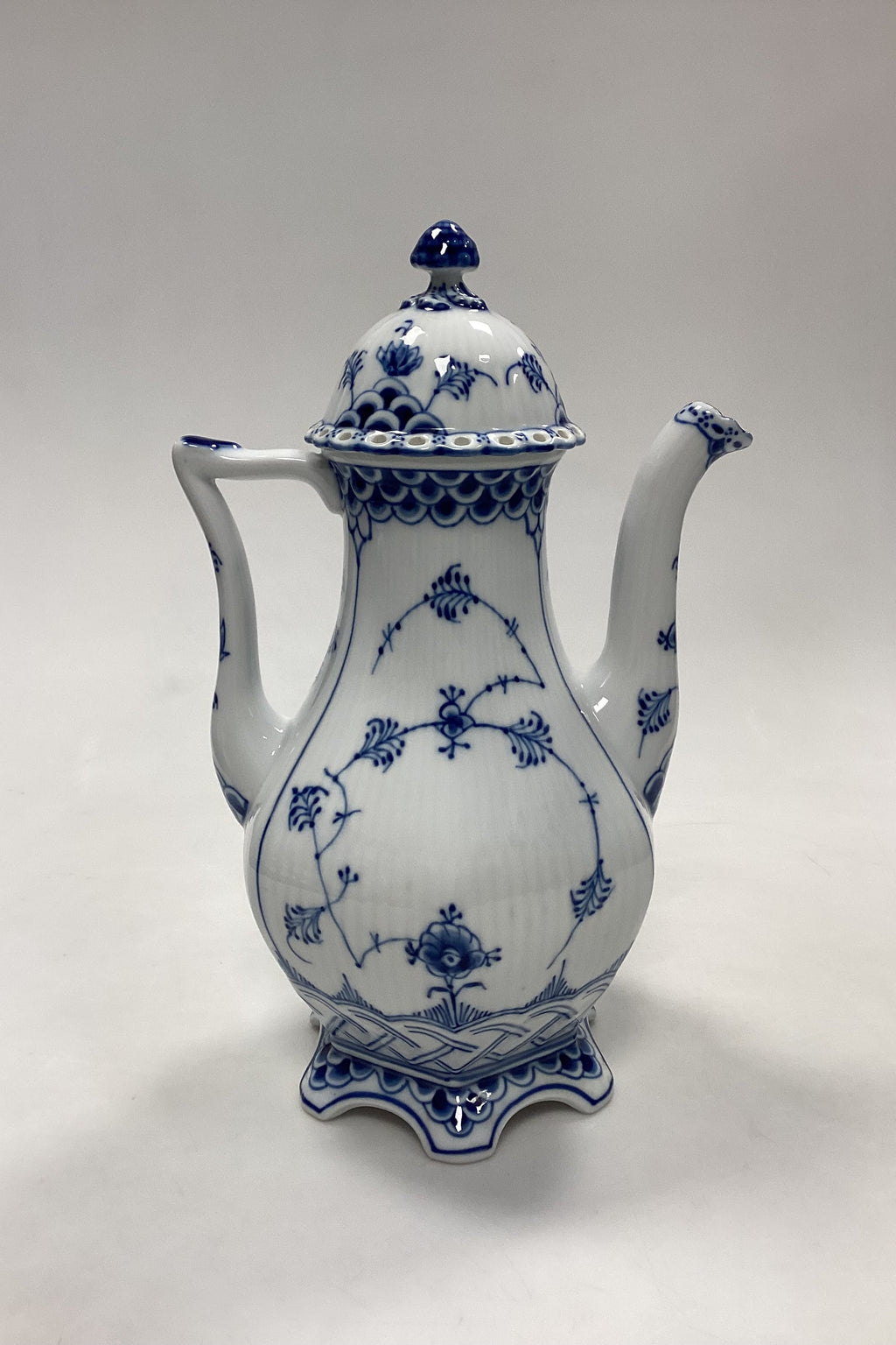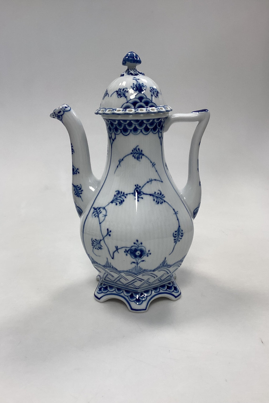 Royal Copenhagen Musselmalet Helblonde sekskantet Kaffekande No. 128 / Låg No. 127.