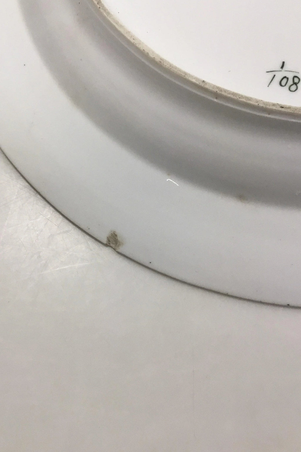 Royal Copenhagen Musselmalet Riflet Rundt Fad No 108. Har to afslag og en kort hårrevne.