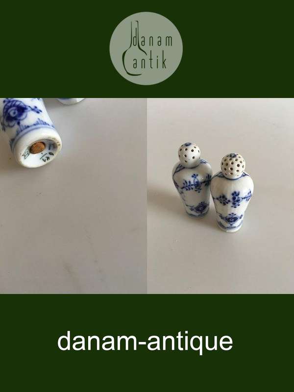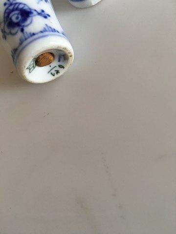 Royal Copenhagen Musselmalet Riflet Salt og Peber Sæt No 439. 6.5 cm. Der skal en ny prop i bunden på begge shakere.