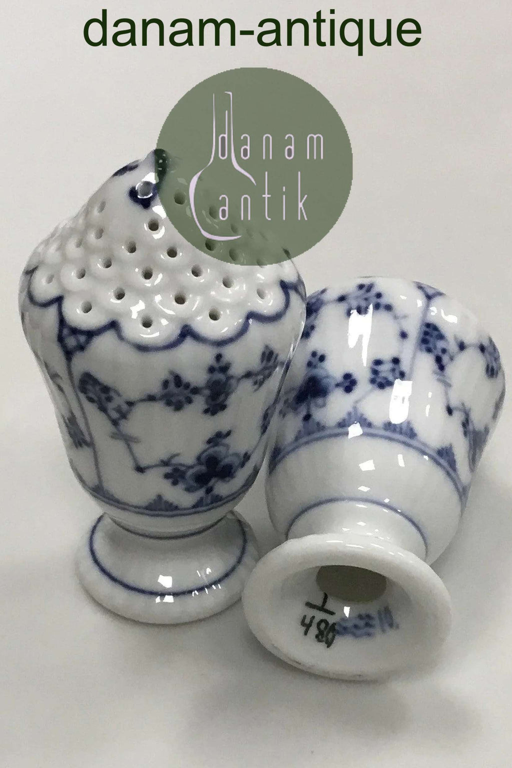 Royal Copenhagen Musselmalet Riflet Salt -og pebersæt No. 467/480. Måler 8 cm (3 5/32 in.)
