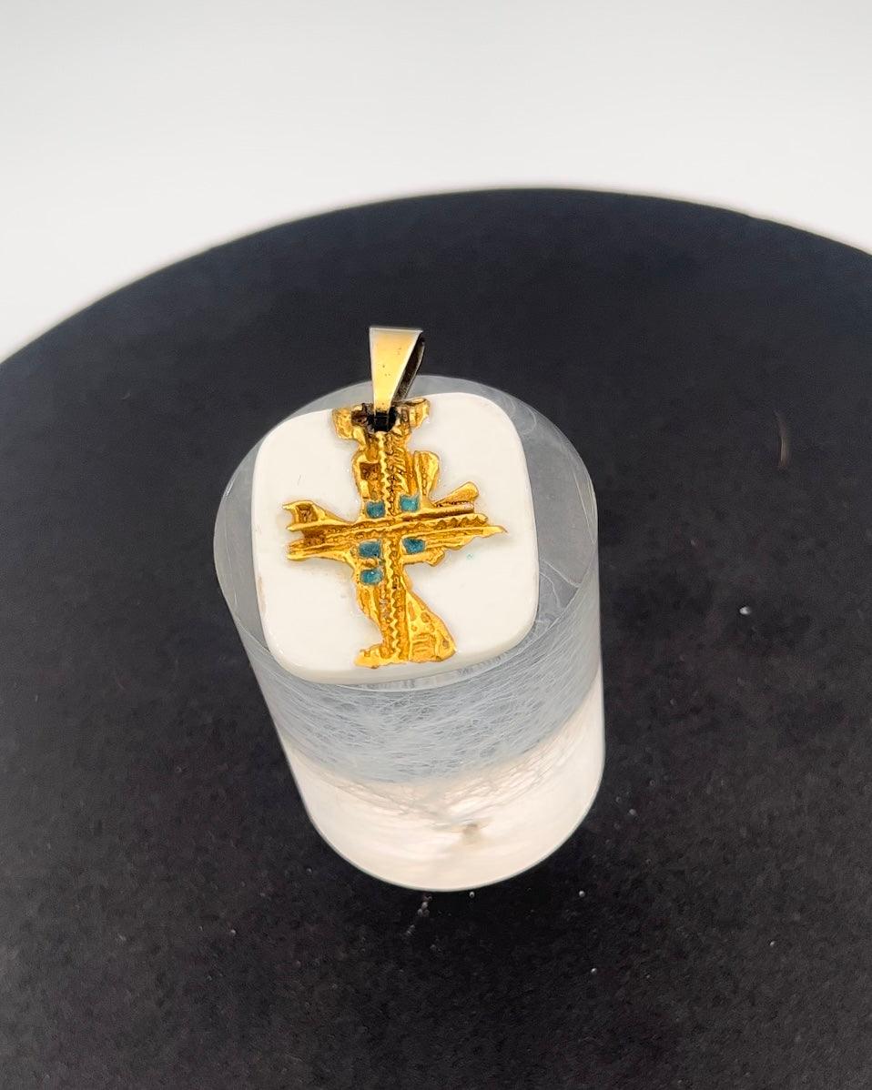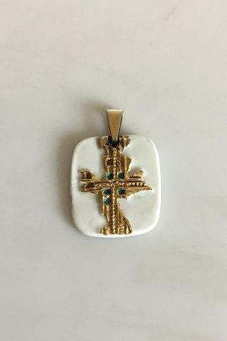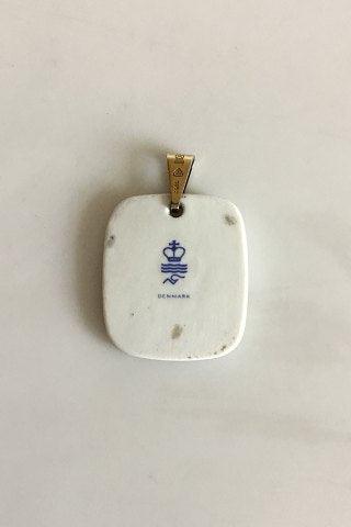 Royal Copenhagen Nils Thorsson Vedhæng. I hvid porcelæn med forgyldt motiv. I fin hel stand. Måler 3,5 x 3 cm