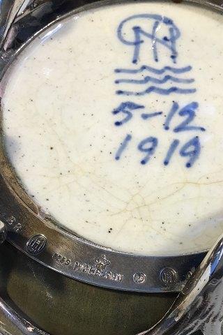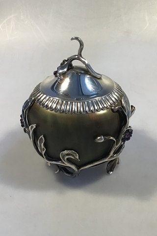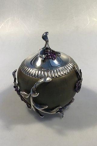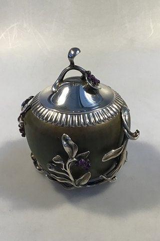 Royal Copenhagen(Patrick Nordstrøm)Stentøjskrukke med Anton Michelsen Sølvmontering og ametyster