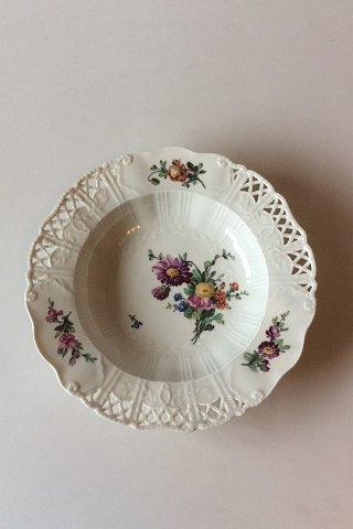Royal Copenhagen Saksisk Blomst Dyb Tallerken i luksusmodel med gennembrudt kant.