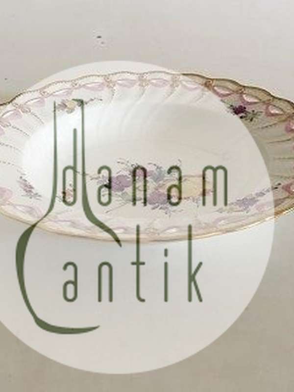 Royal Copenhagen Fuld Saksisk Blomst Dyb Tallerken med Gennembrudt Blondekant fra 1860-1890