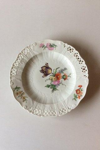 Royal Copenhagen Saksisk Blomst Middags-/Frugttallerken i luksusmodel med gennembrudt kant.