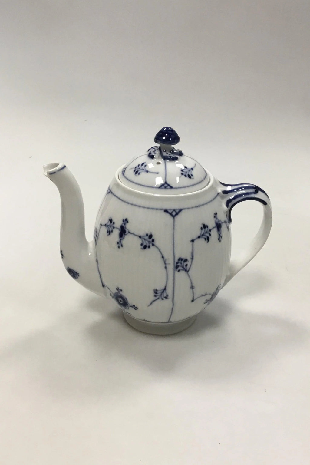 Royal Copenhagen Sjælden Musselmalet Riflet Lille Thekande No 374. Måler 17 cm ( 6.70 in. ) Med afslag på tuden
