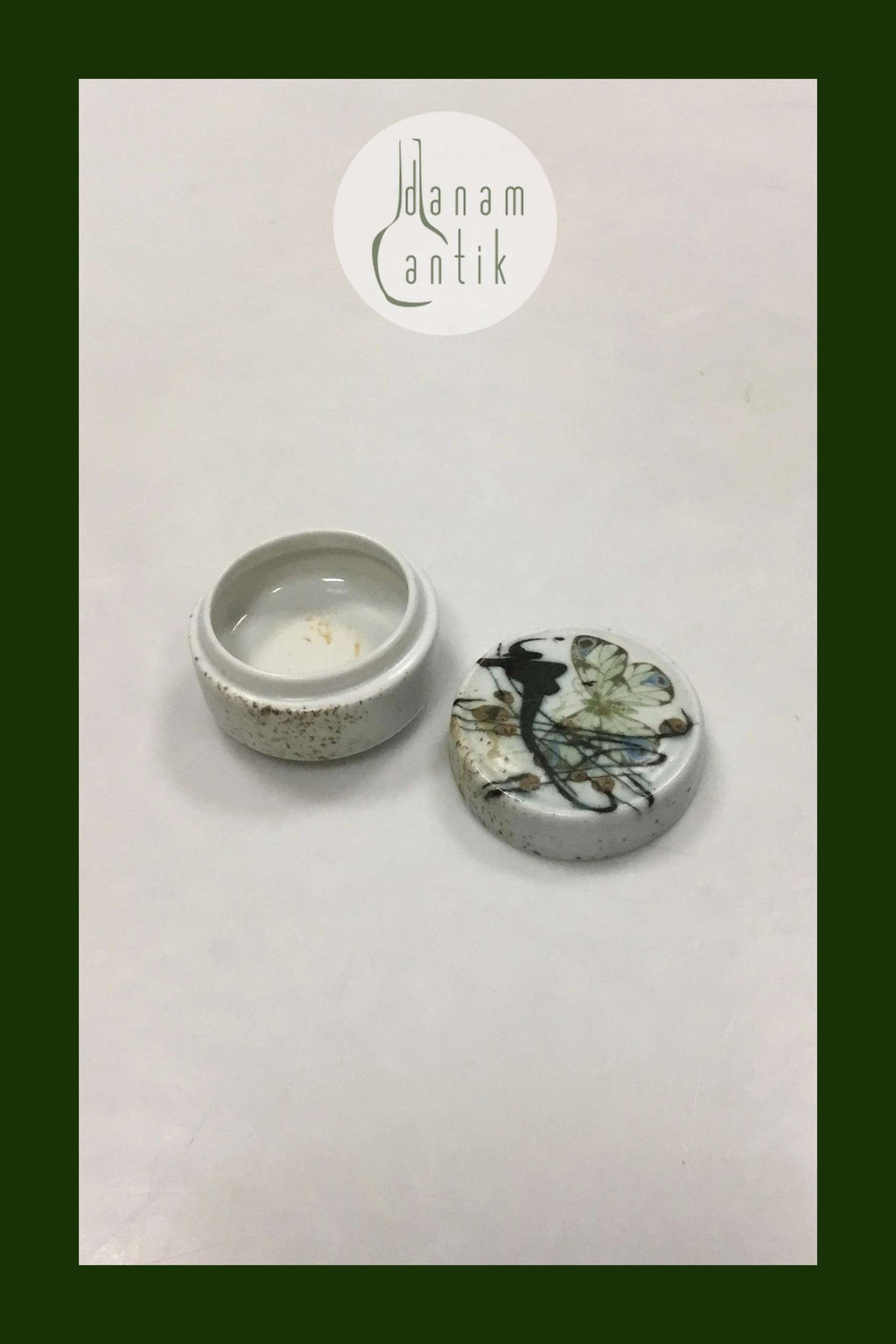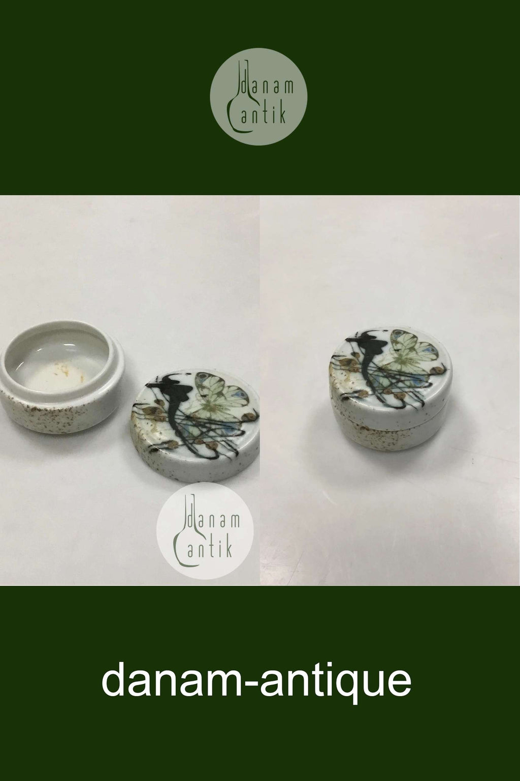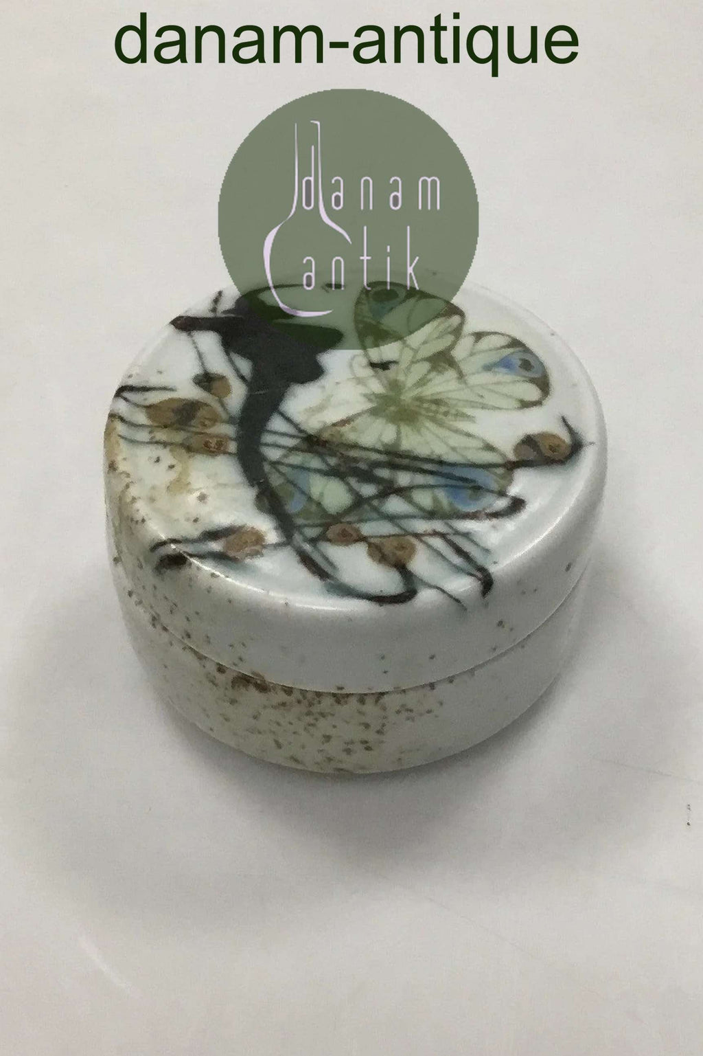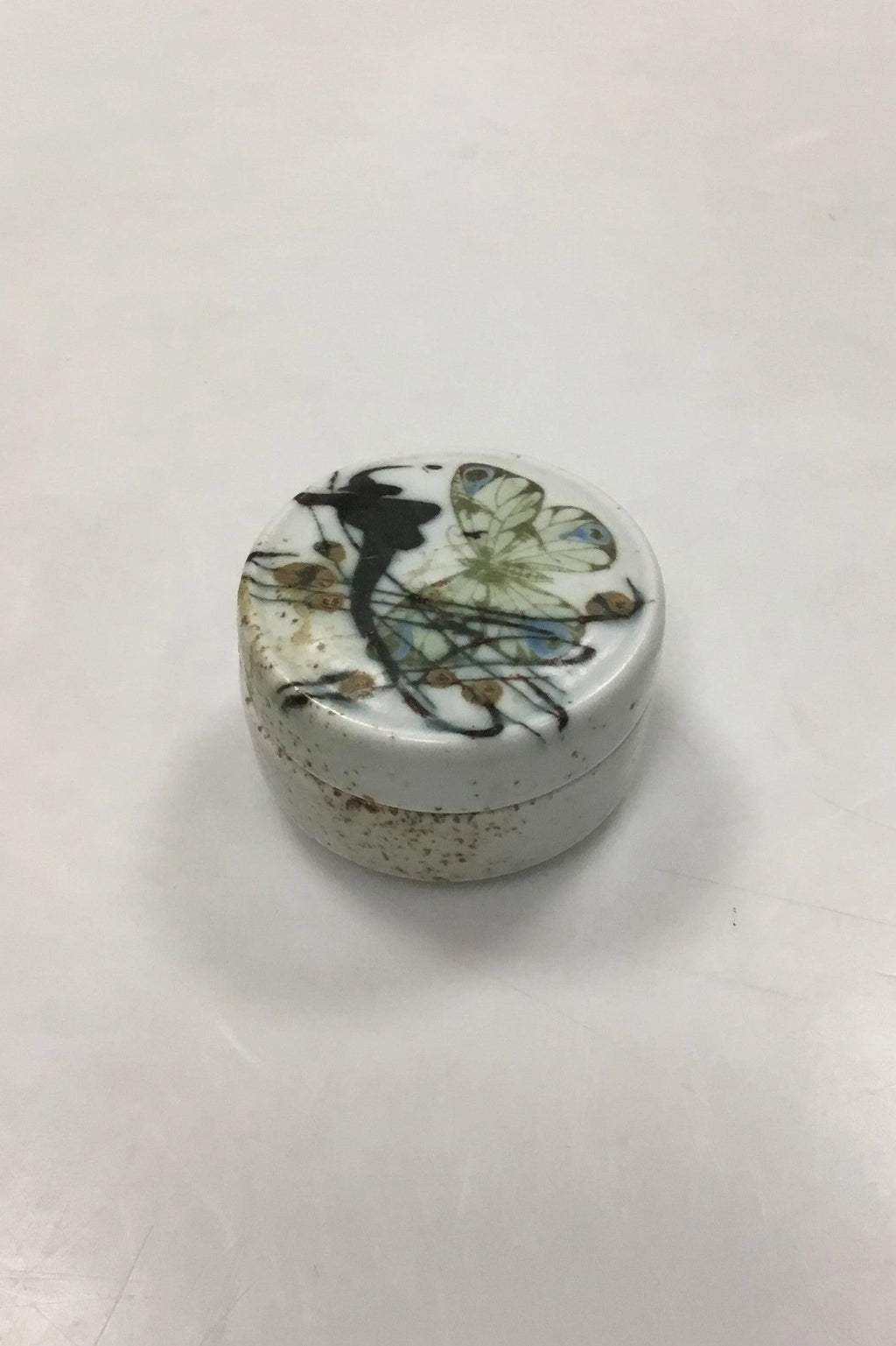Royal Copenhagen Stentøj Pilleæske No 1055/5325. Designet af Nils Thorsson, dekoreret med sommerfugl. Måler 6 cm ( 2.36 in. )