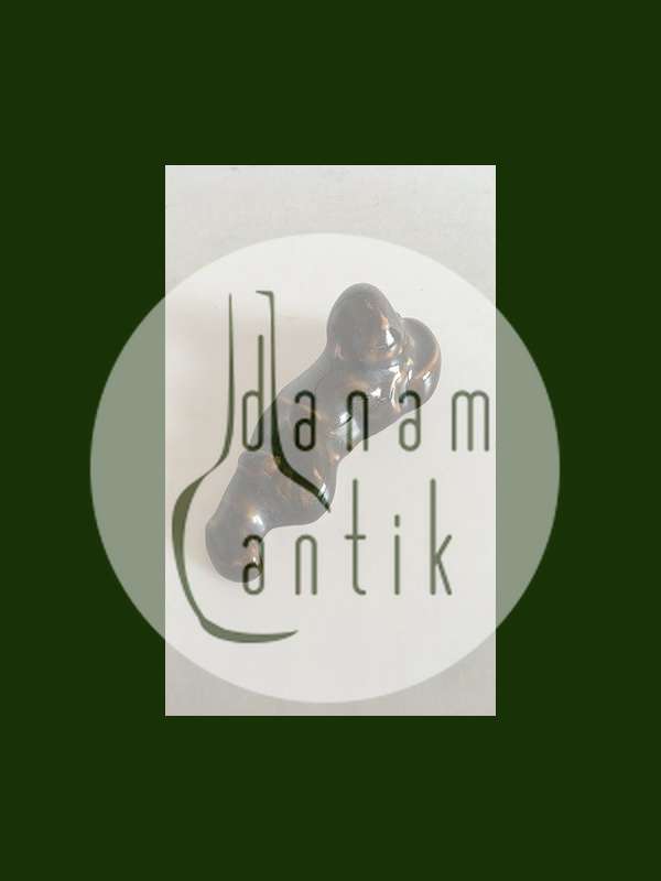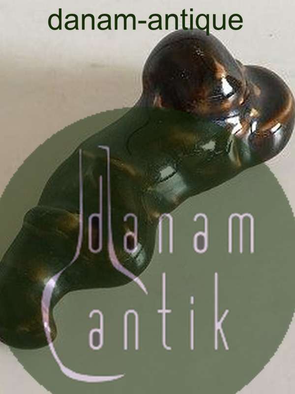 Royal Copenhagen Stentøjs Figur af Lille liggende Budda Dreng. Prøve Glasur. Måler 10cm.
