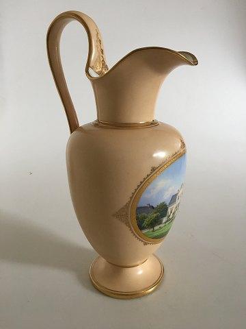 Royal Copenhagen Tidlig kande med låg og motiv af Herskabsvilla