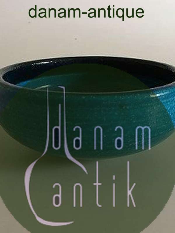 Royal Copenhagen Unika Stentøjsskål med Blå Glasur af Nils Thorsson. Kvindeportræt i bunden af skolen. 5.5 cm H. 13 cm diameter. I fin stand.