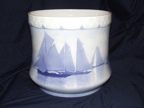 Royal Copenhagen Unika Vase af Arnold Krog med Sejlskibe fra 1900. Måler 32cm bred og 28cm høj. Fremstår i perfekt stand.
