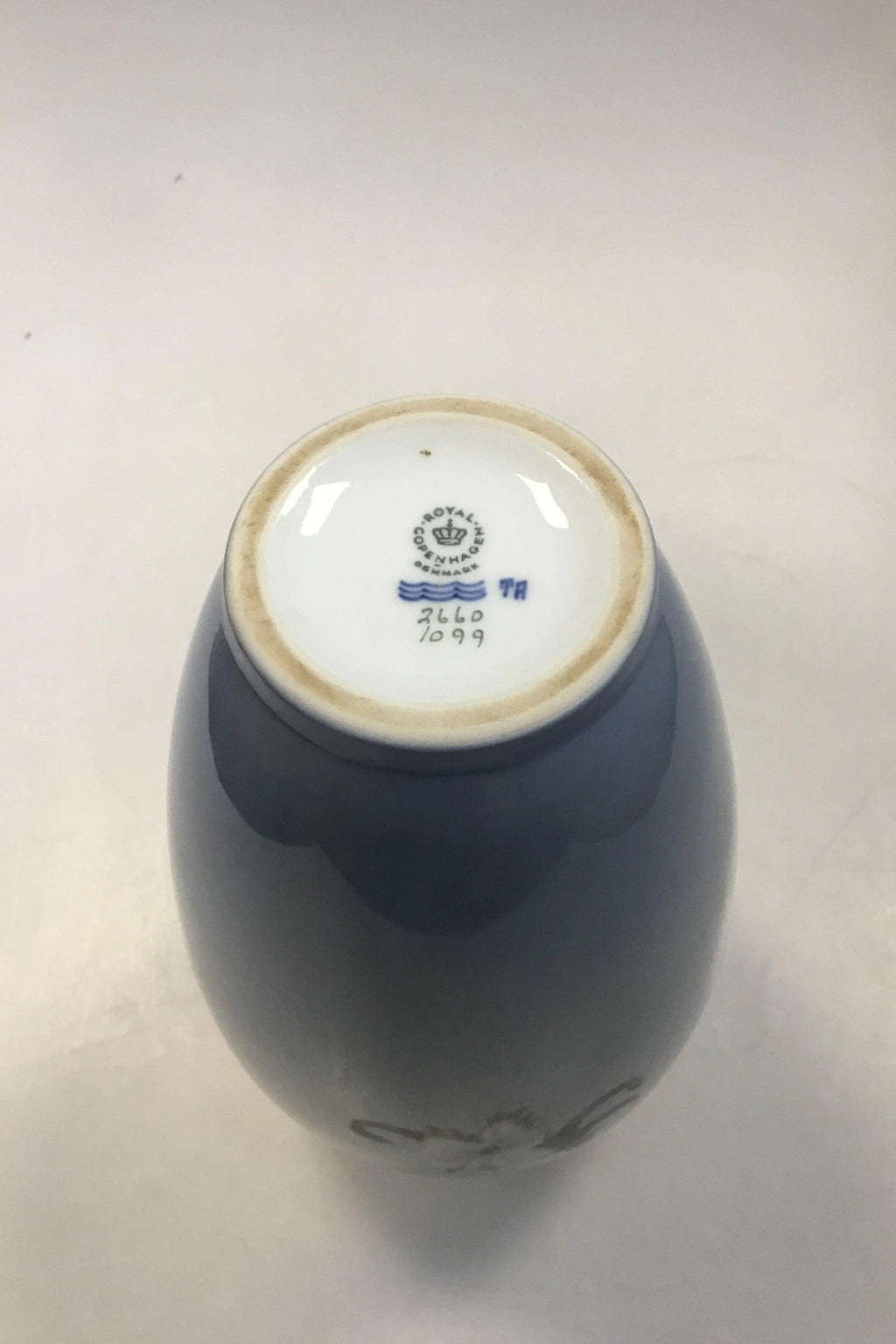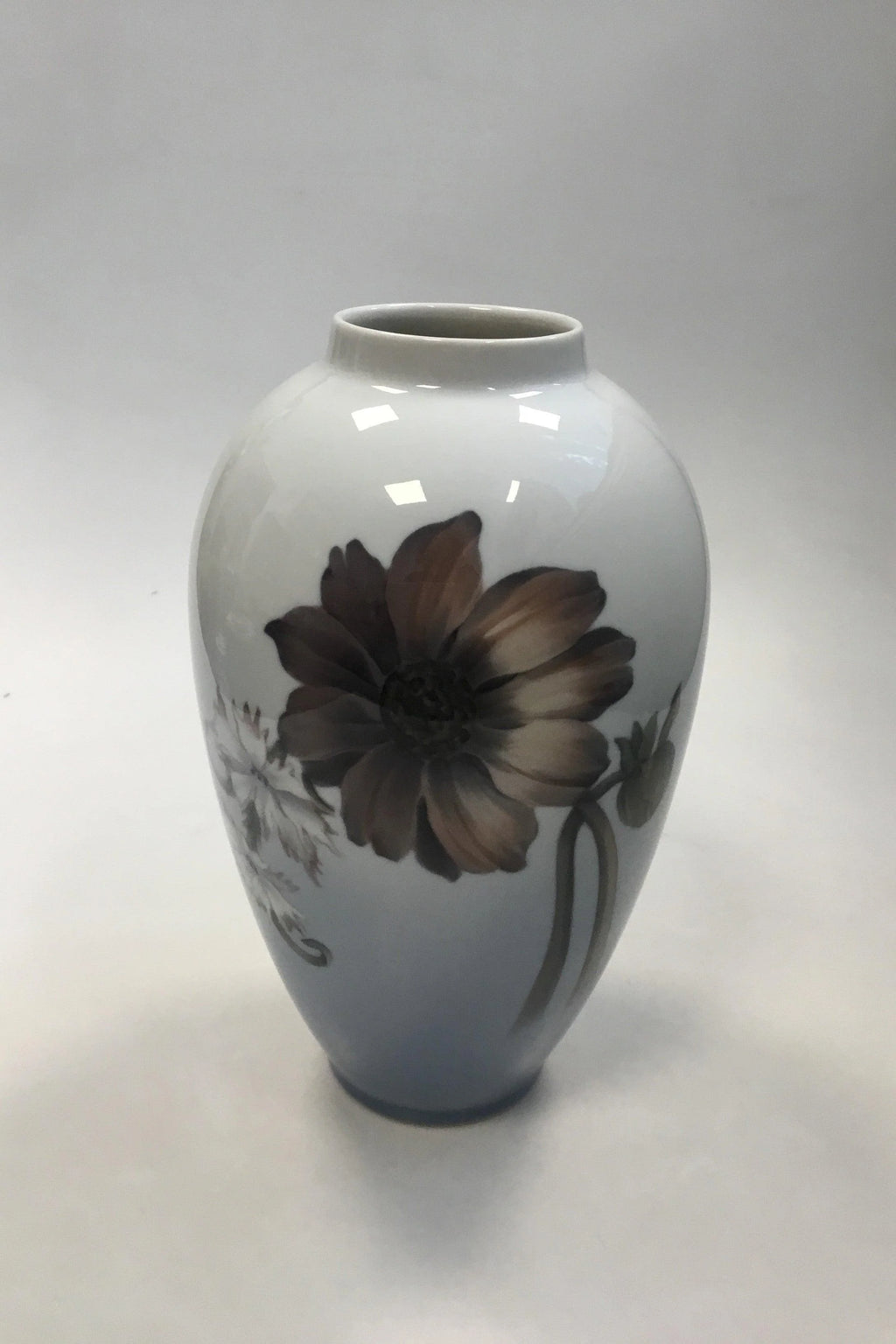 Royal Copenhagen Vase No 2660/1099 med Rødbrune og Hvide Blomster. 26 cm H. 1.Sortering. I fin hel stand.