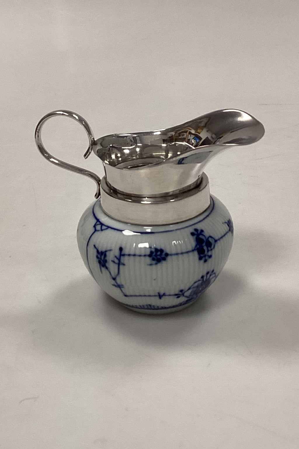 Tysk musselmalet Sukker og Fløde sæt, med metal montering, muligvis nikkel.