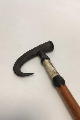 Spadserestok af lakeret træ med håndtag af horn. Normal brugsslitage. Måler 81 cm