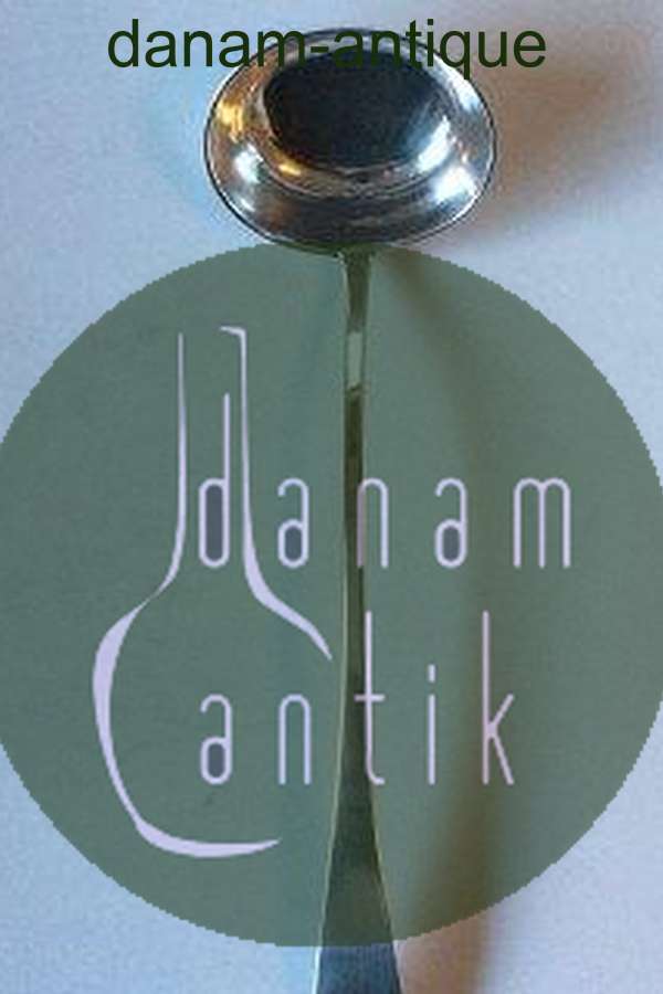 Stor suppeøse af sølv. Indgravering og stemplet Kühl.j. Måler 39 cm. Vejer 177 g.