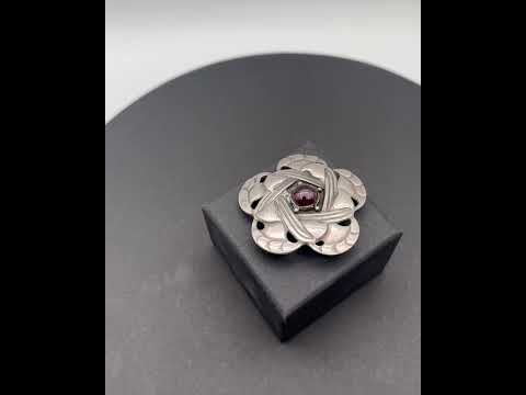 Tidlig Georg Jensen Sølv Broche med Rød Karneol. Måler 4 cm diameter. Vejer 12 gram. Produceret 1909-1914. I fin stand.
