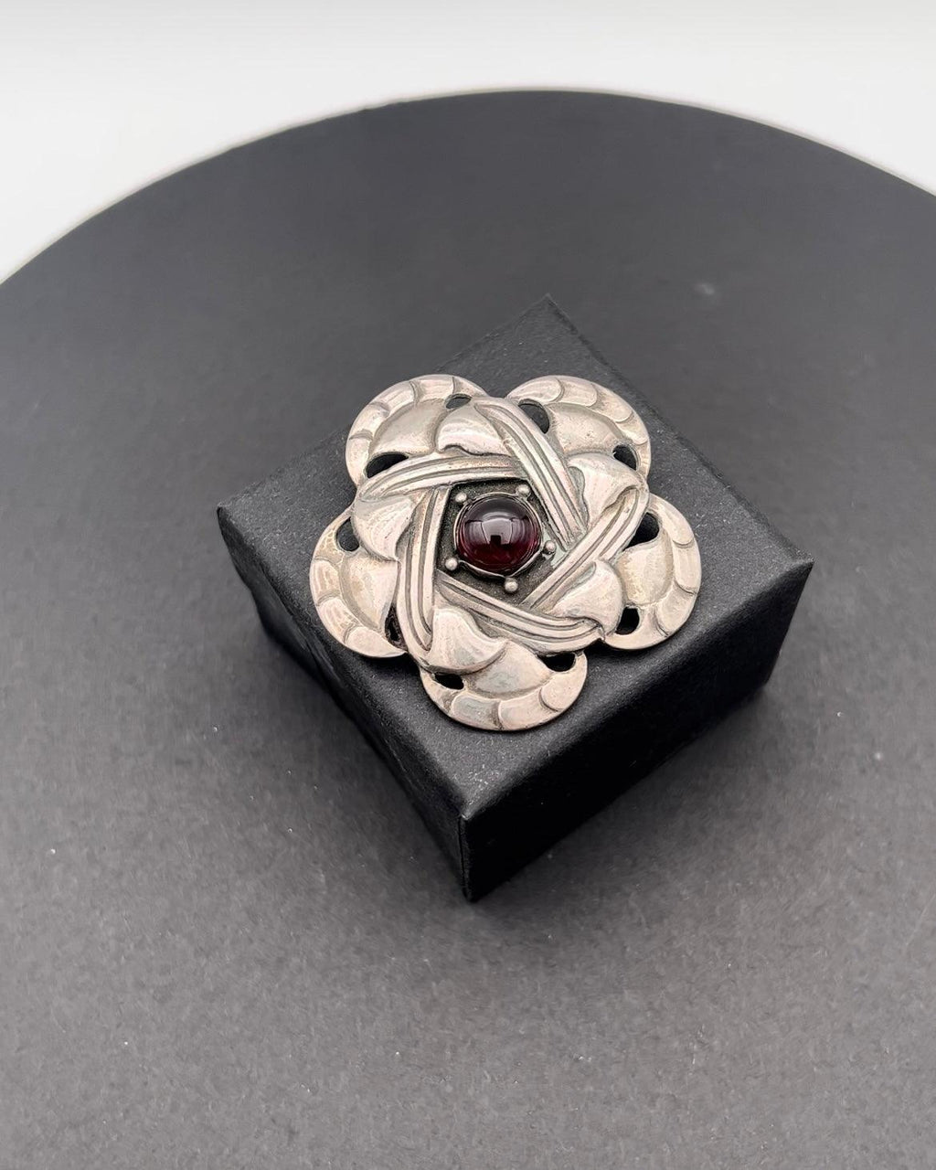 Tidlig Georg Jensen Sølv Broche med Rød Karneol
