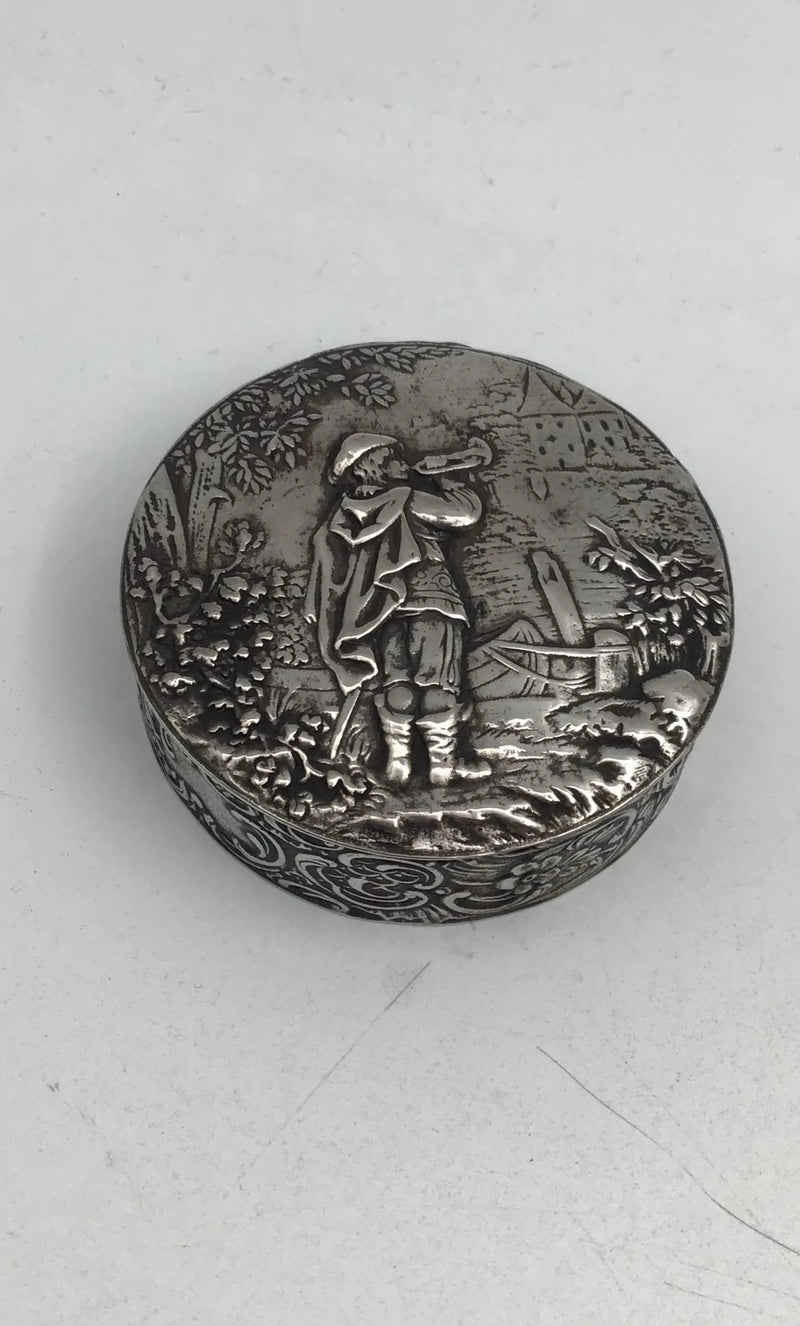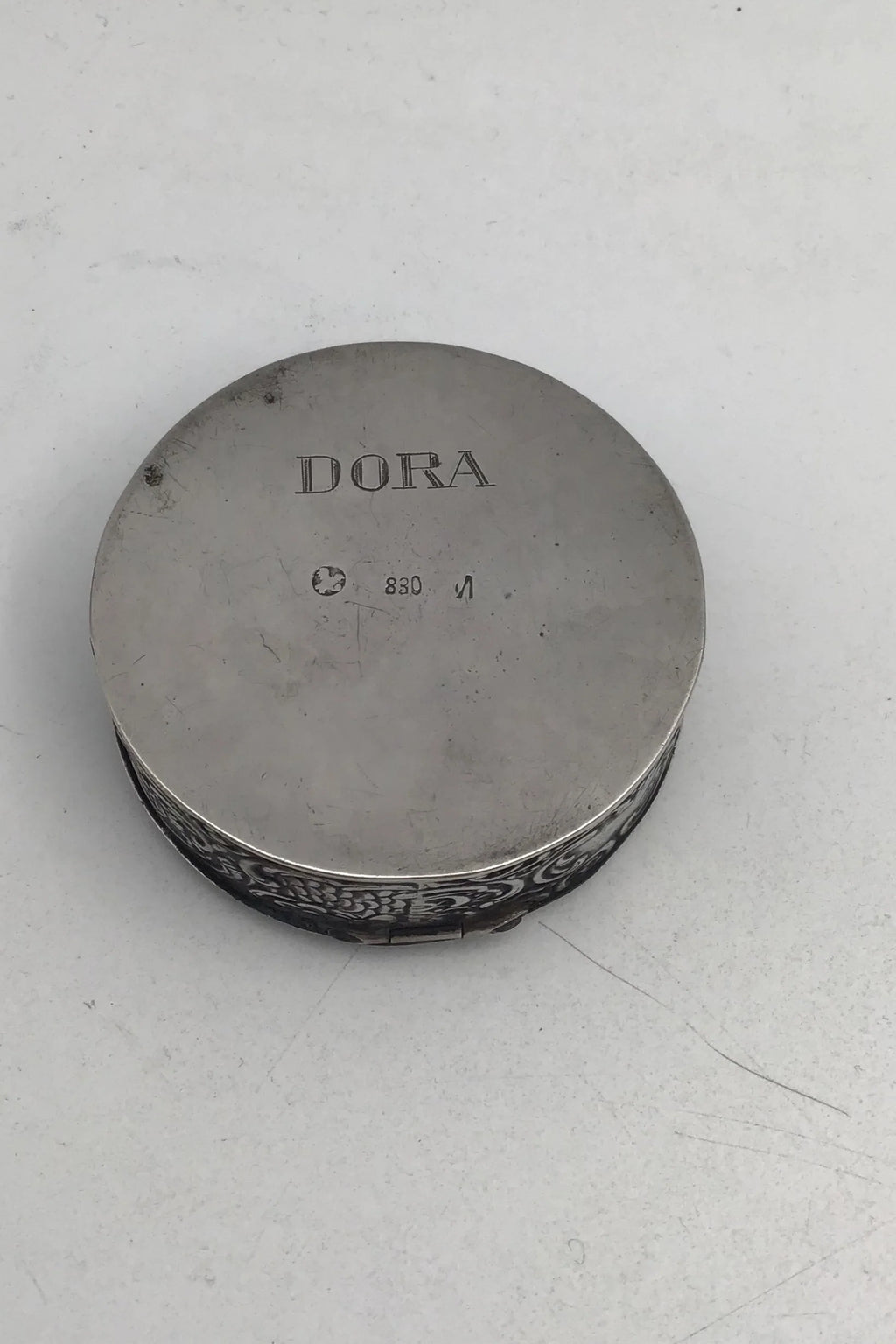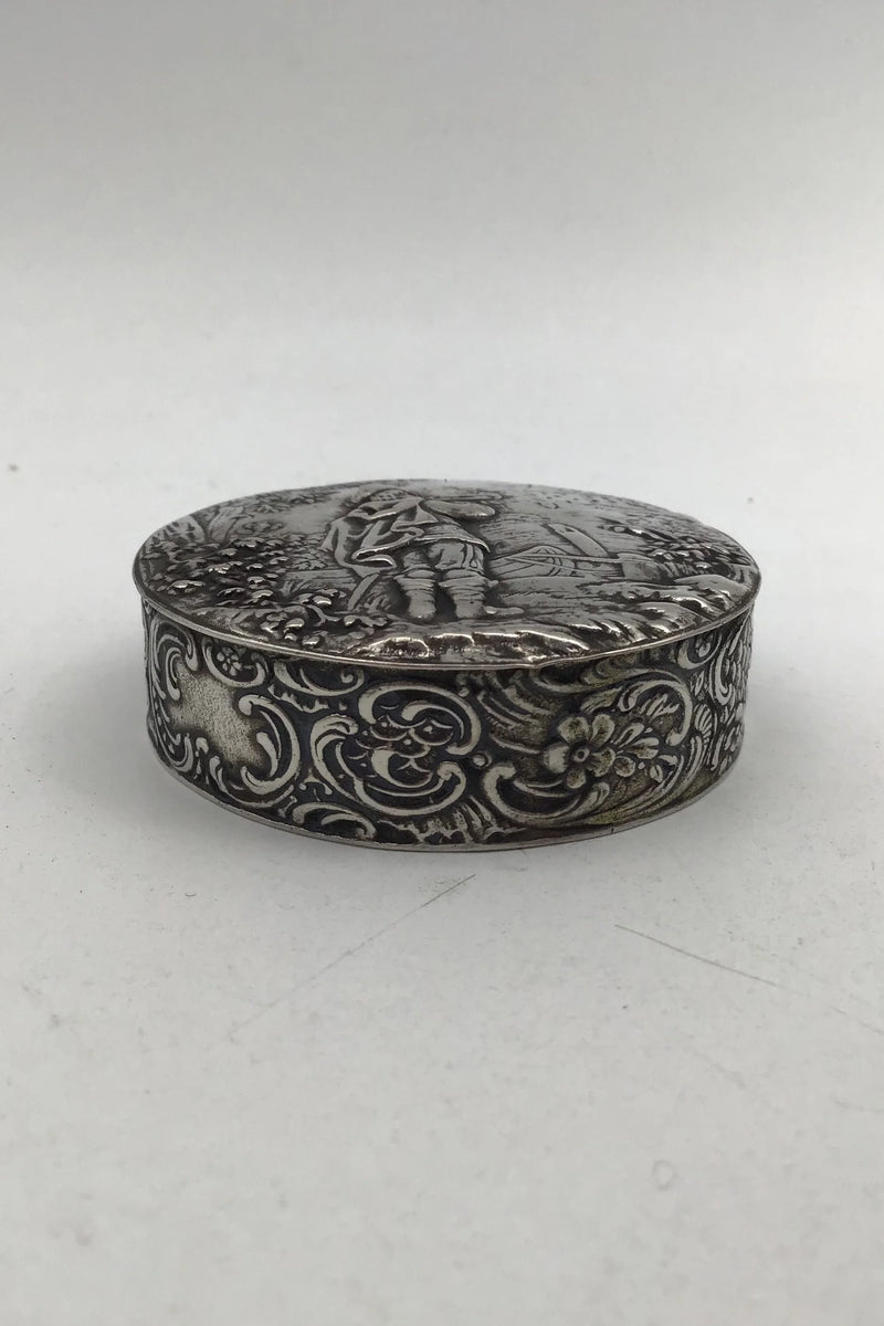 Tysk? Sølv Pilleæske / Snusdåse Måler Diam 5.8 cm (2.28 inch) Vægt 58.5 (Gravering)