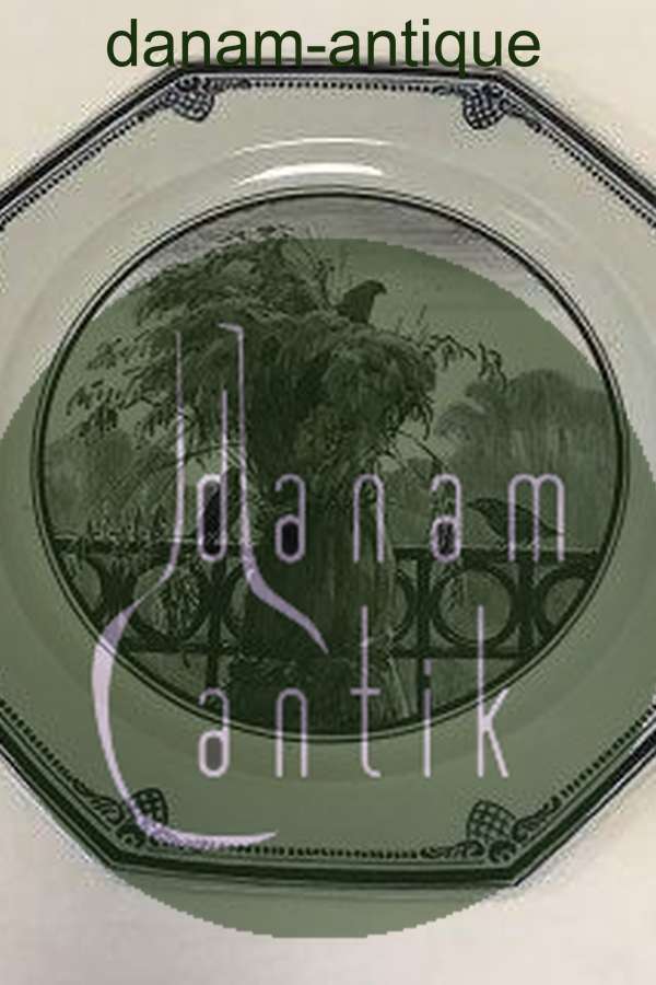 Unika Royal Copenhagen ottekantet fad af porcelæn, dekoreret i underglasur blå med fugle i neg. Signeret 6/3-1917 af Gotfred Rode. Måler 39,5 cm