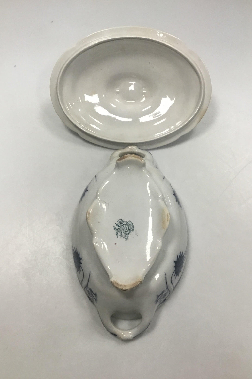 Villeroy og Boch Milla/Tidsel Oval Terrin. Måler 30 x 17,5 x 14 cm (11 13/16 x 6 57/64 x 5 33/64 in). Fremstår med mindre afslag, misfarvning og/eller krakelering.