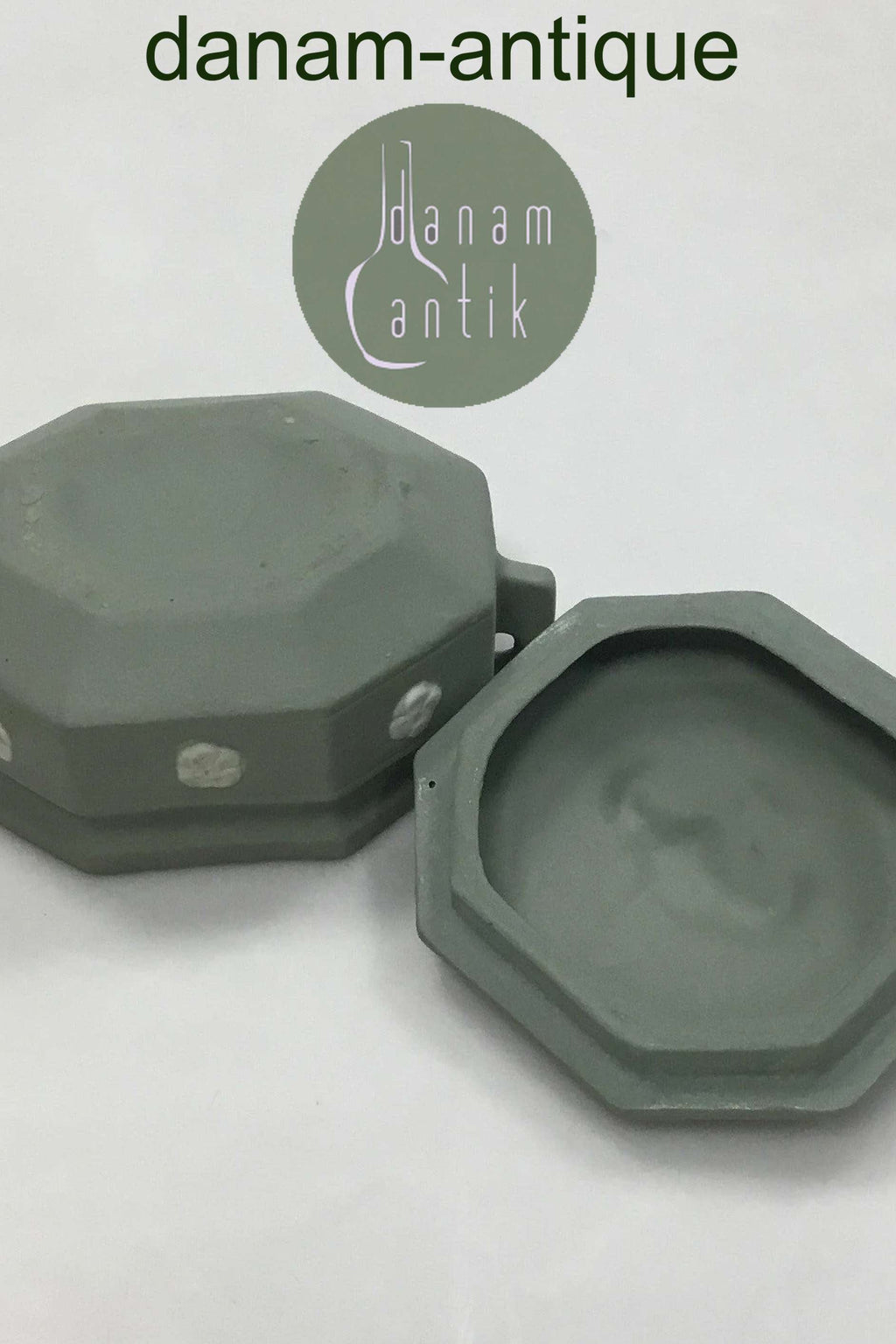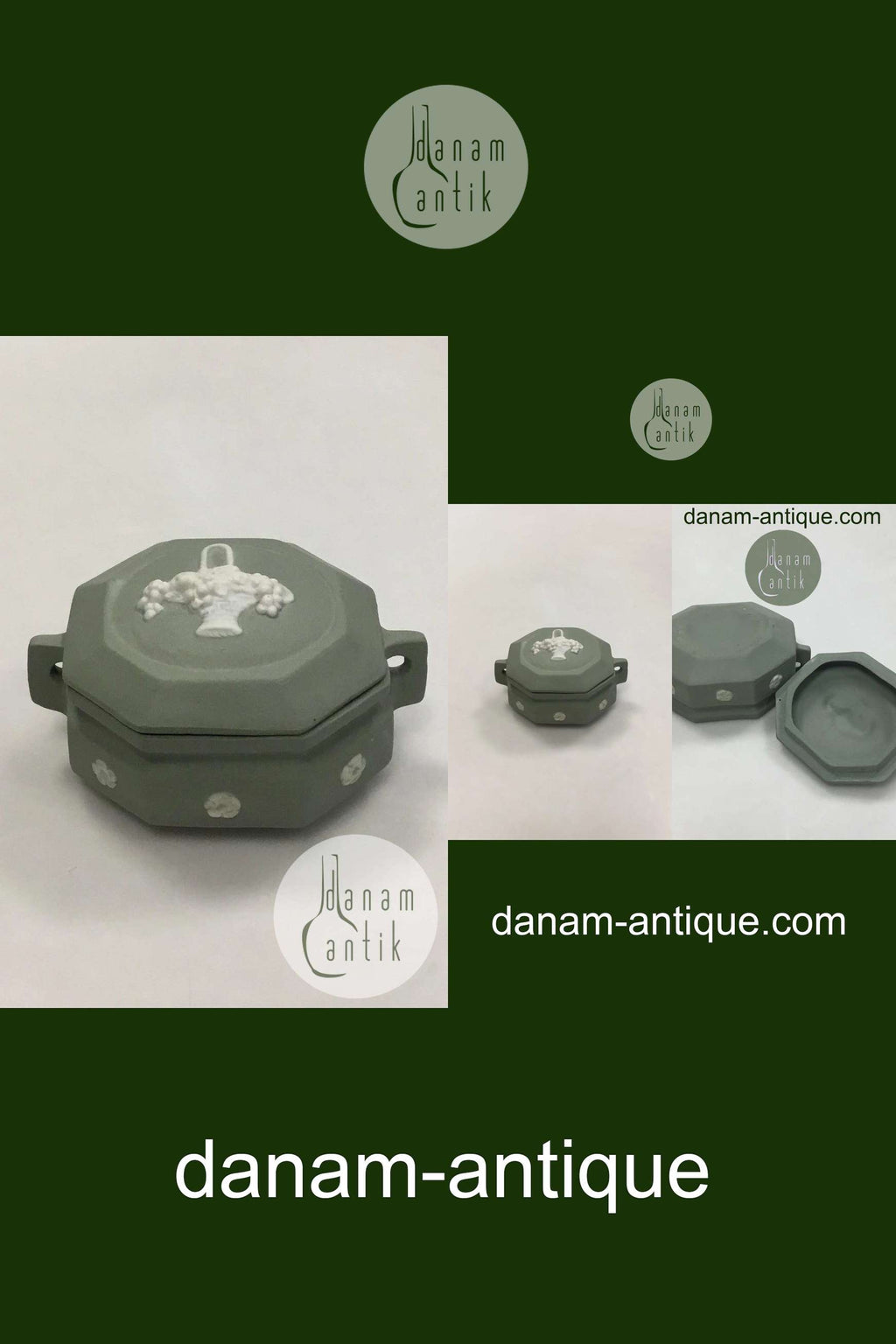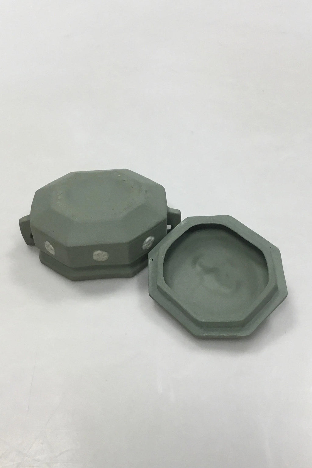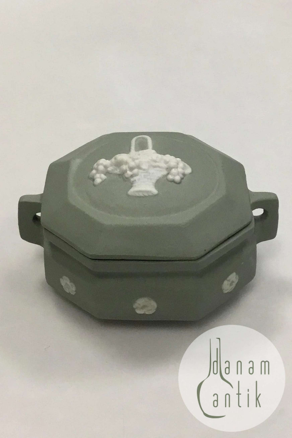 Wedgewood Lille grøn bonbonniere dekoreret med blomster. Måler 9,5 cm(3 47/64 in.)
