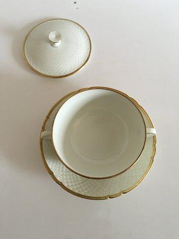 Bing & Grondahl Aakjær Bouillon Cup with Lid and Saucer No 247。奶油色带金边。状况良好。0.30 l.